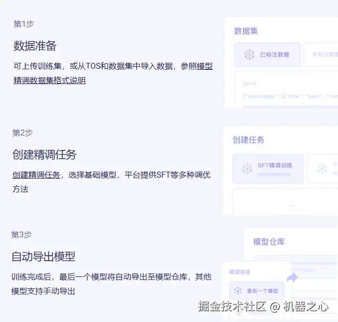 在火山方舟上可以非常轻松地完成模型精调