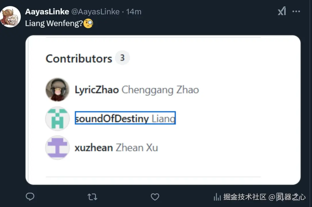 在项目的贡献者列表中,有人发现了一个姓 Liang 的工程师,难道是 DeepSeek 创始人梁文锋(真实性有待考证)?