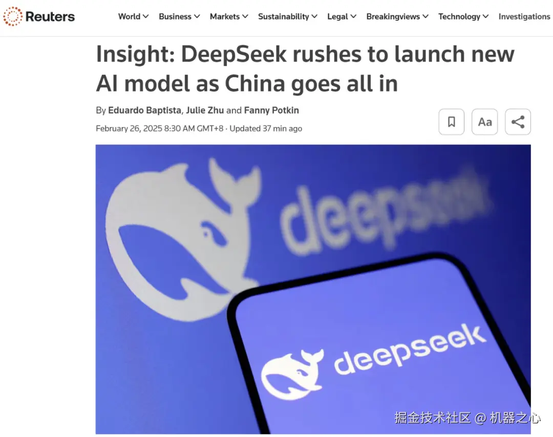 就在 DeepSeek 紧锣密鼓地开源的同时,人们也在四处探寻该公司下一代大模型的信息。昨天晚上,路透社突然爆料说 DeepSeek 可能会在 5 月之前发布下一代 R2 模型,引发了关注。