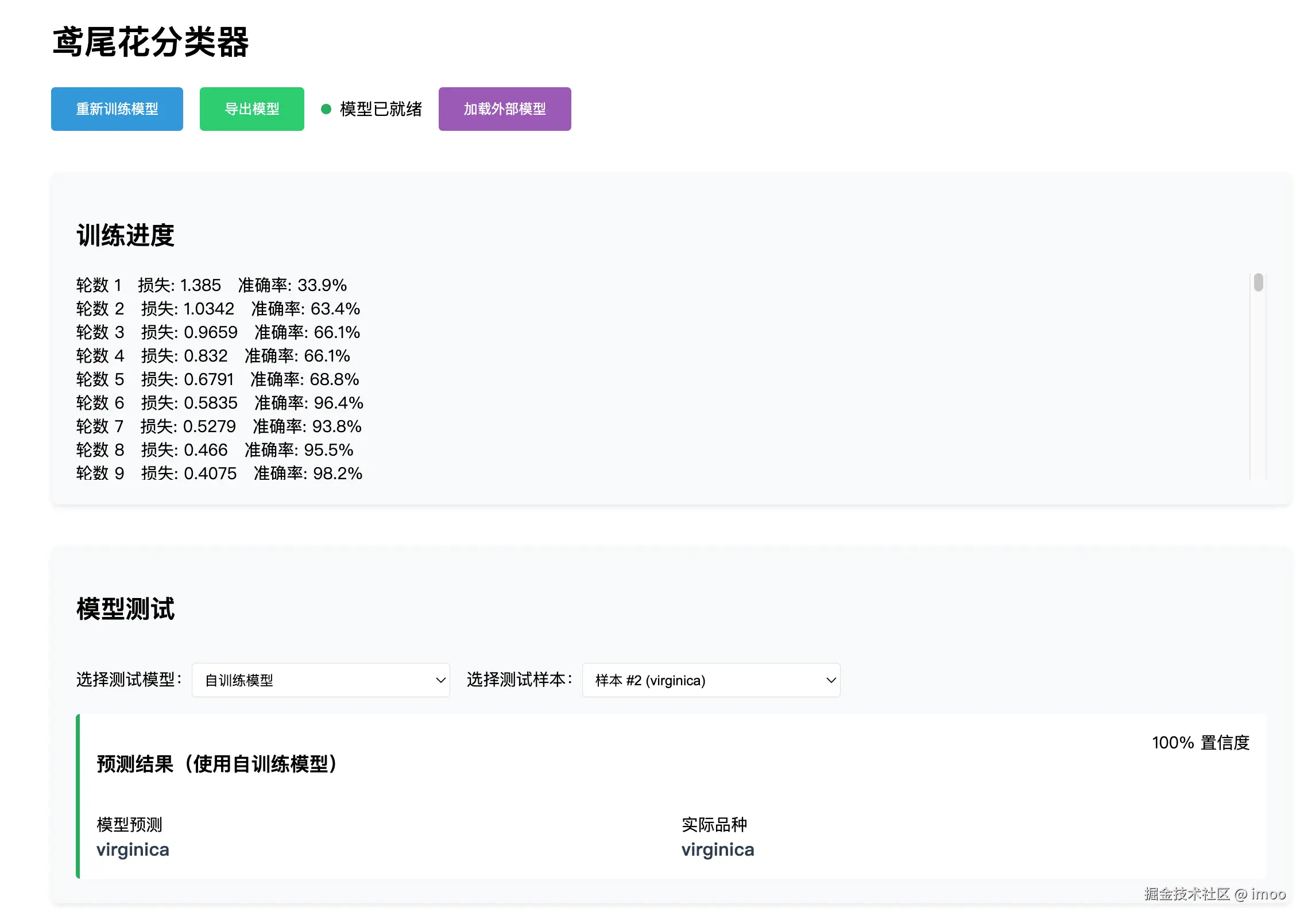 关于神经网络的介绍网上已经有非常多了,这篇文章就不再赘述太多,本文主要介绍具体使用步骤与一个简单的使用案例。使用了 vite + react 框架,神经网络的库使用了 @tensorflow/tfjs。这是最终的页面