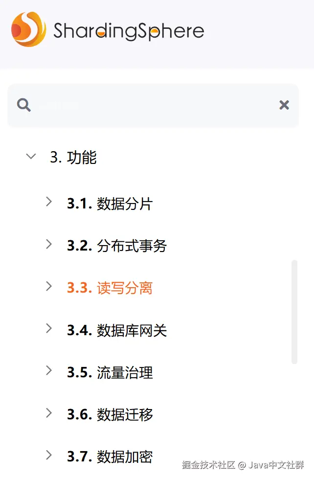 从 Apache ShardingSphere 官网也可以看出读写分离是其提供的主要功能之一: