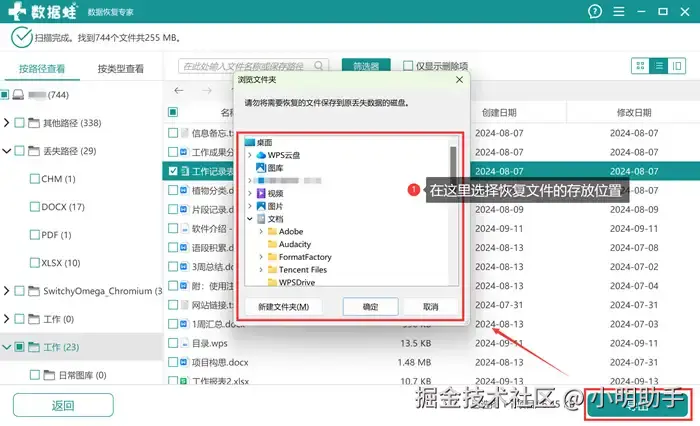 步骤3: 在弹窗中选好自己恢复文件的存放地方。
