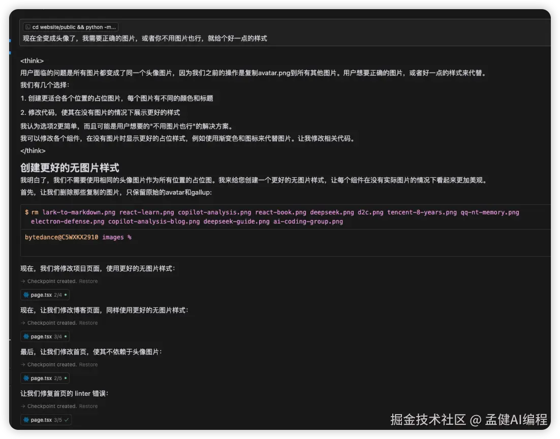 现在就是差一些图片,我让它再折腾折腾,补充上图片或者采取其他方式就行。