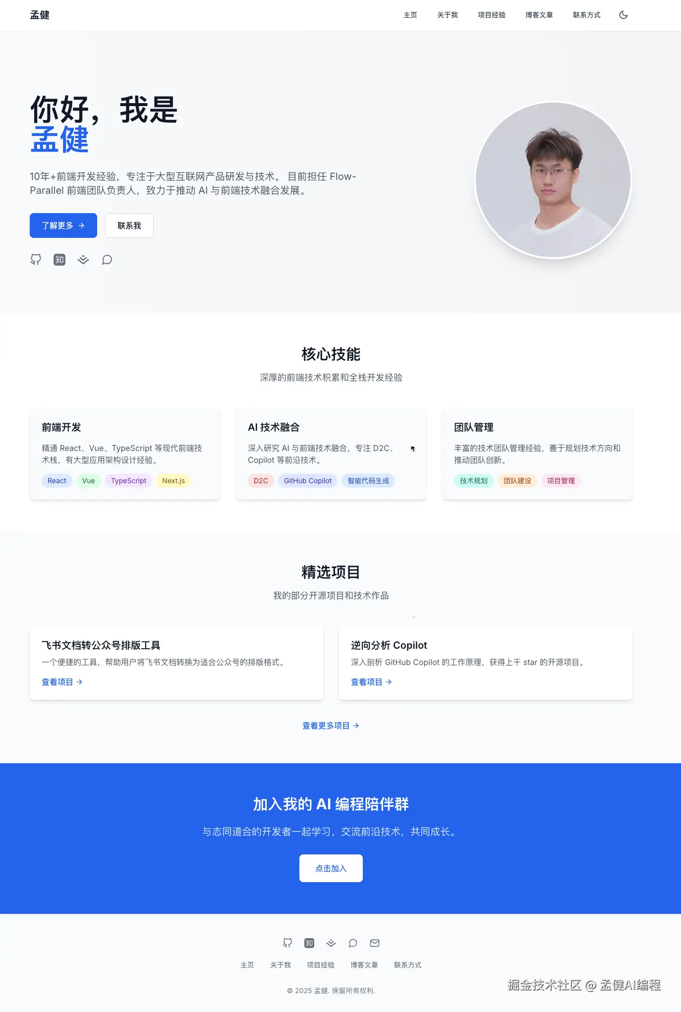 如果你也对 AI 编程感兴趣,想学习如何利用 Claude 3.7、Cursor 等工具提升效率,欢迎关注我的公众号(同名搜),加入我们的技术社群。 在这里,你不仅能获取最新的 AI 工具教程,还可以和一群志同道合的开发者一起交流、成长,共同探索 AI 编程的未来。