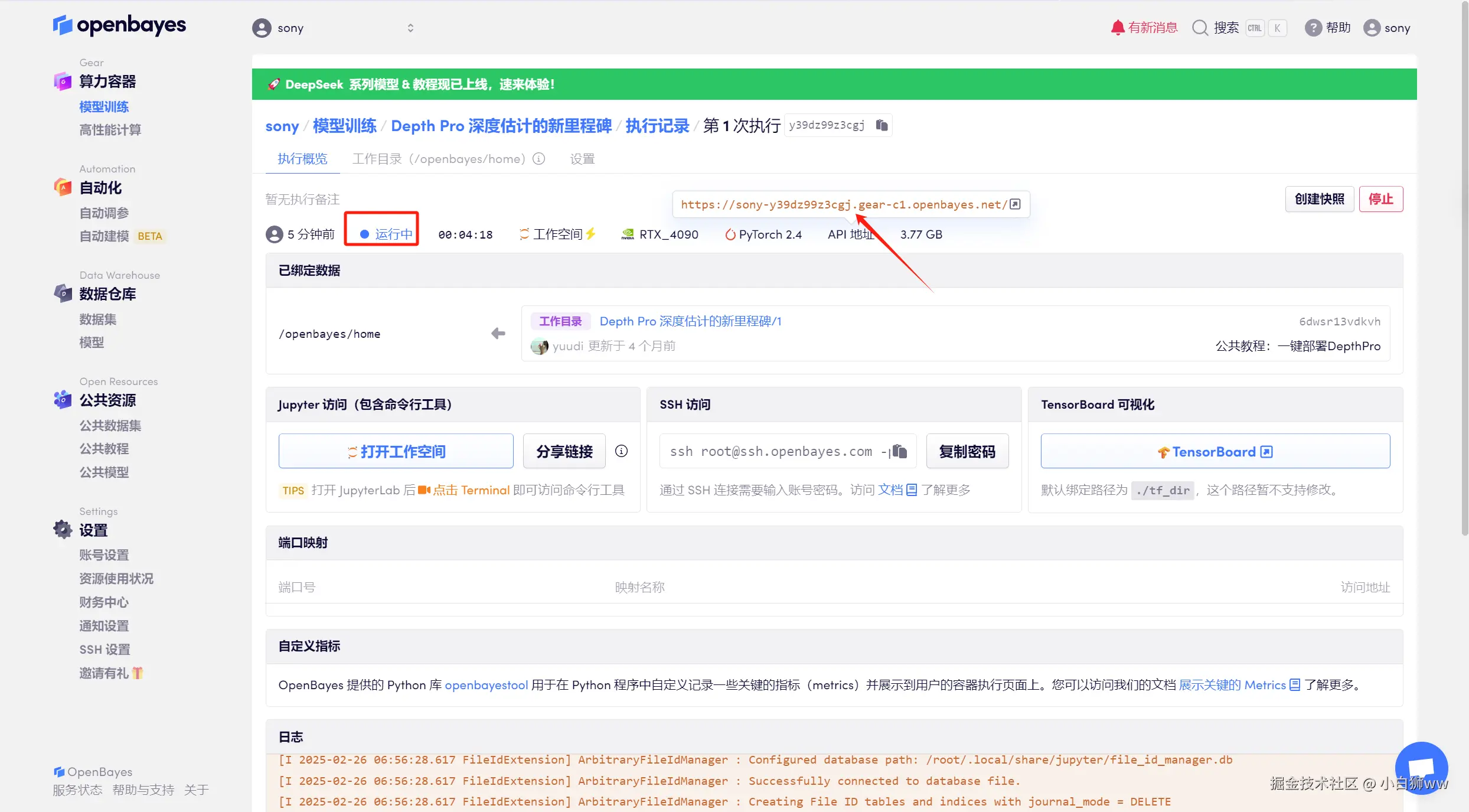 选择「NVIDIA GeForce RTX 4090」以及「PyTorch」镜像,OpenBayes 平台上线了新的计费方式,大家可以按照需求选择「按量付费」或「包日/周/月」,点击「继续执行」。可以使用文章开头的邀请链接,获得 RTX 4090 使用时长!