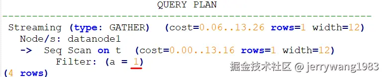 计划如下,可以看到过滤条件为待填充的入参,即此计划为Generic Plan。