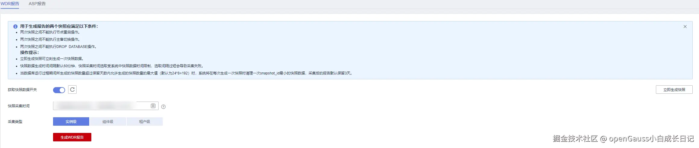 GaussDB数据库实例生成WDR快照时,GaussDB实例无需被DBMind实例纳管。
