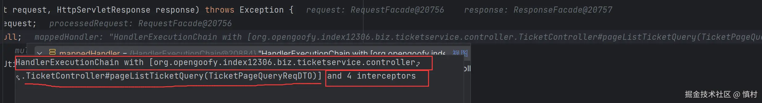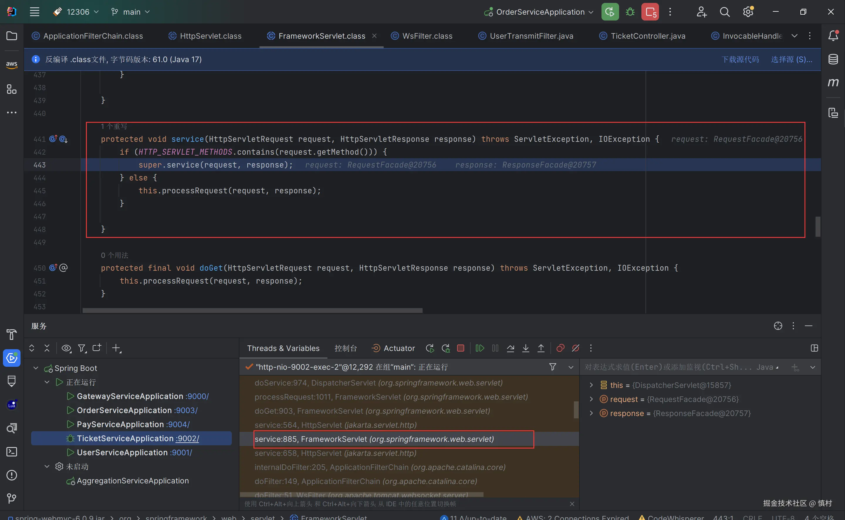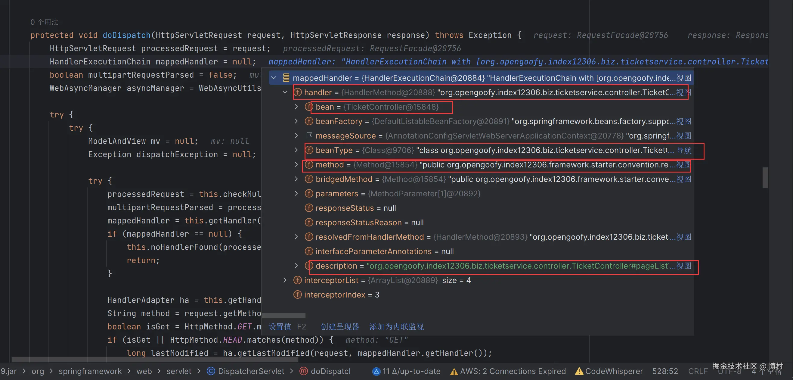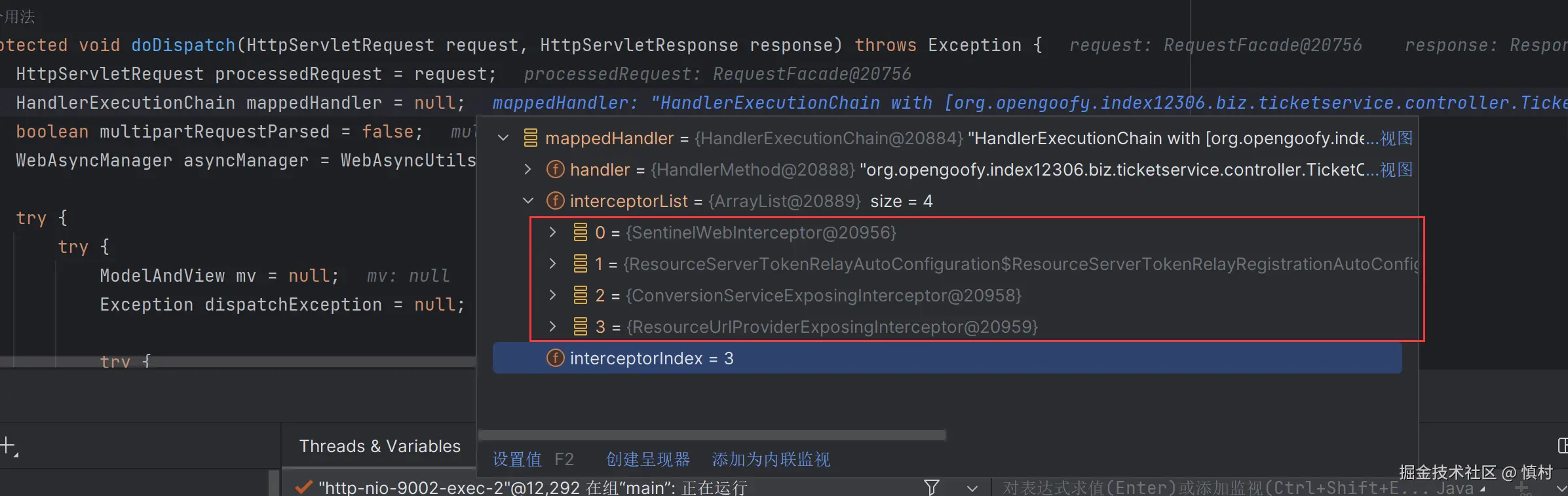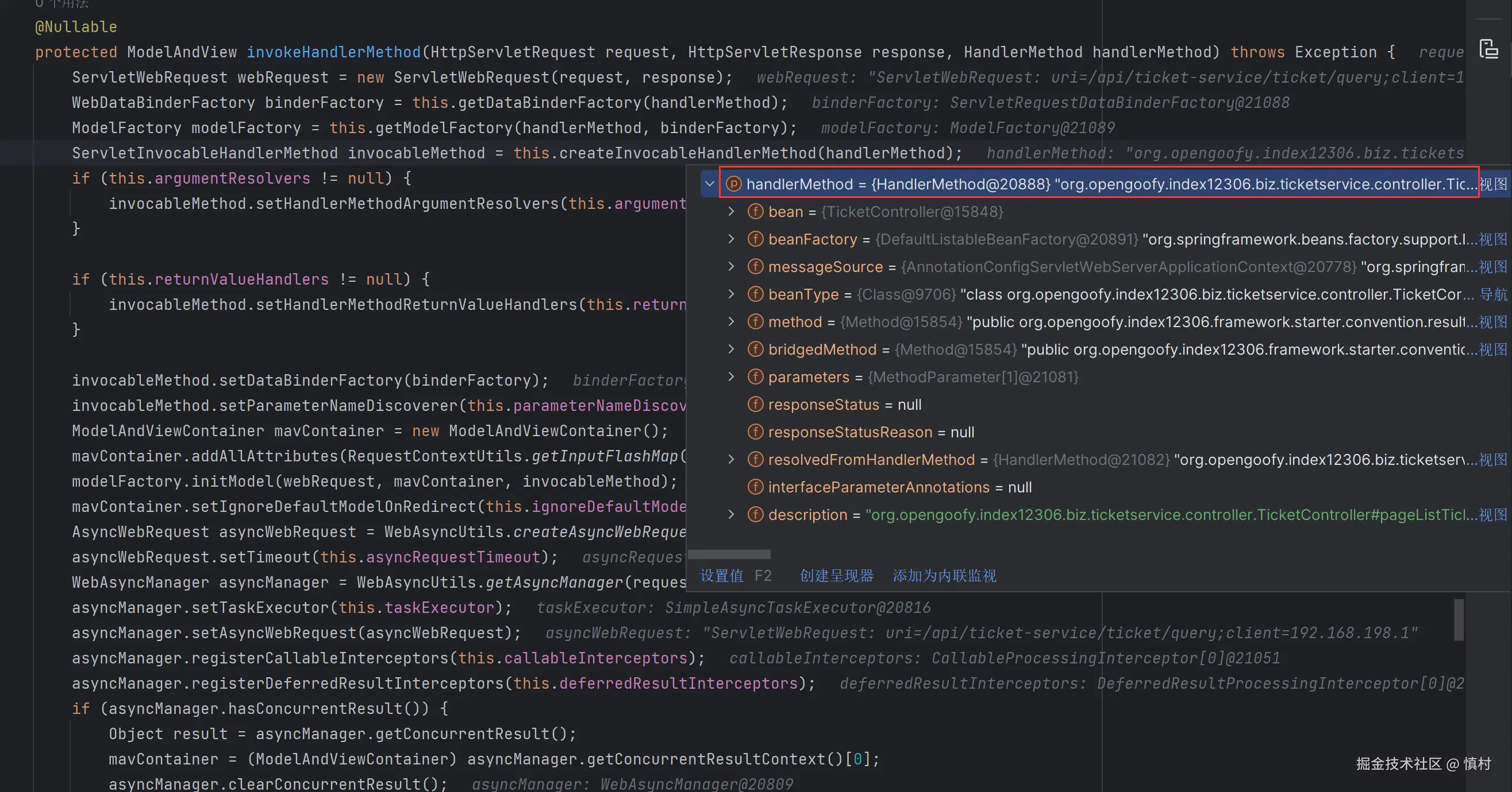 可以看到执行了mi(ticketServiceImpl).proceed方法
