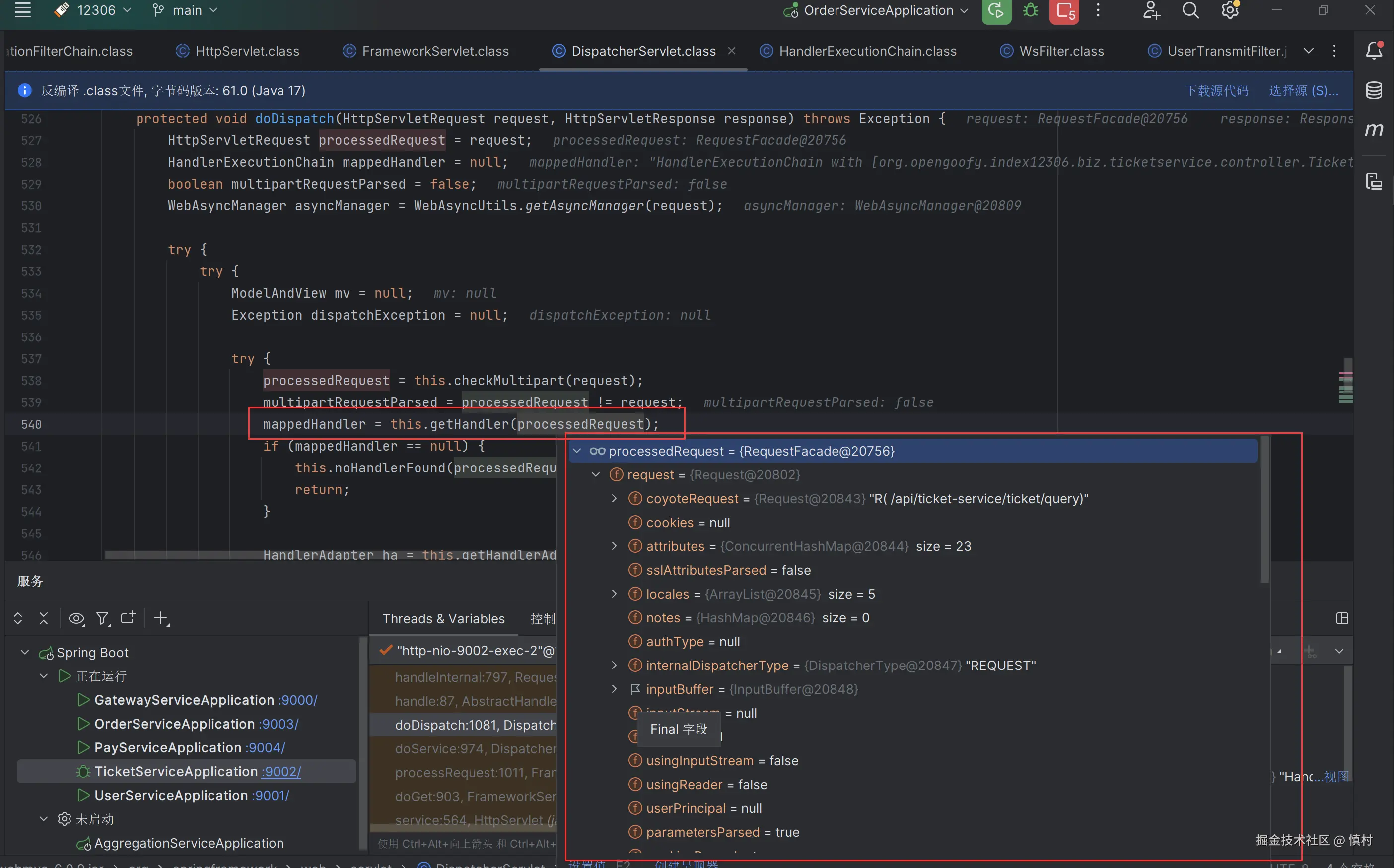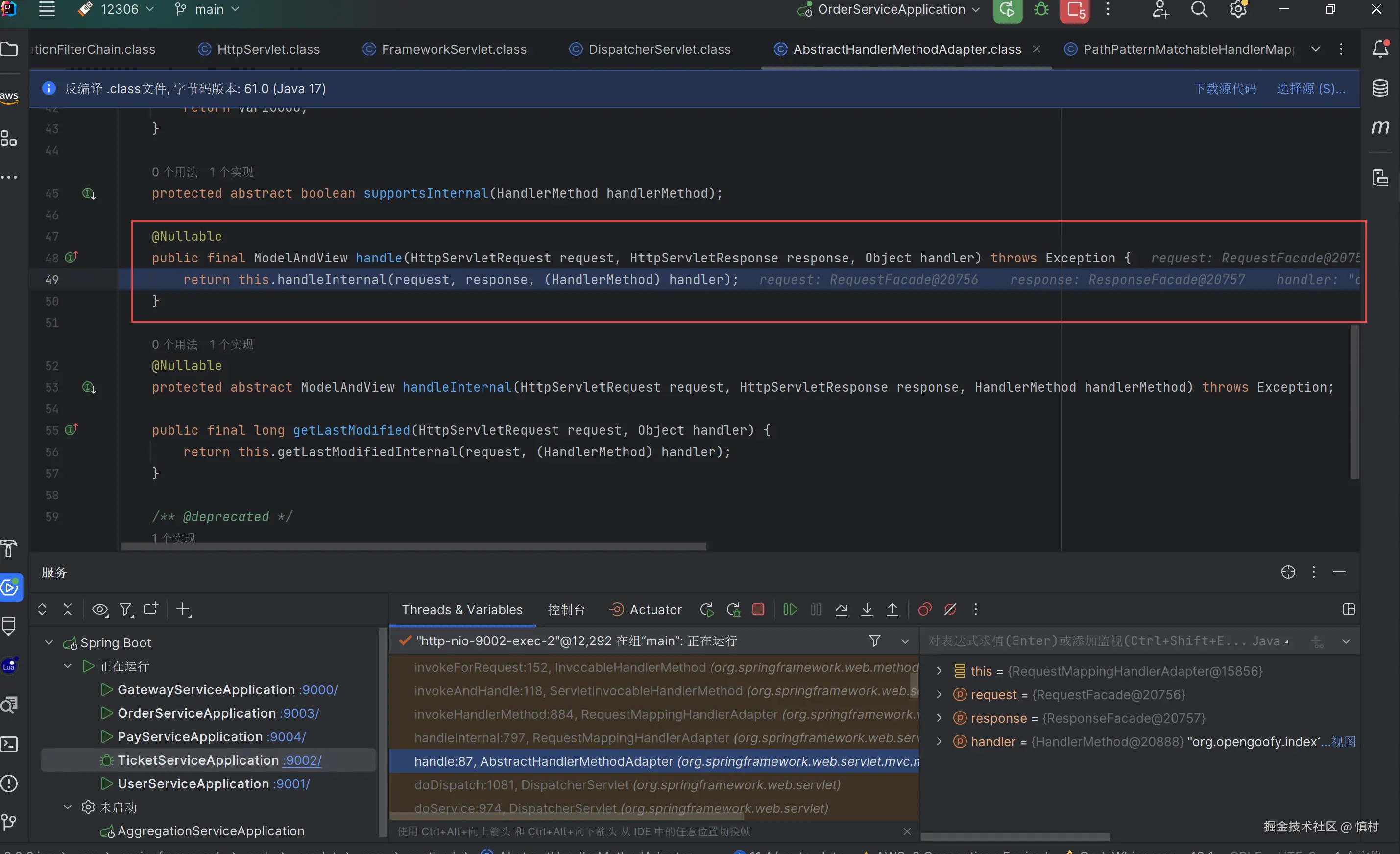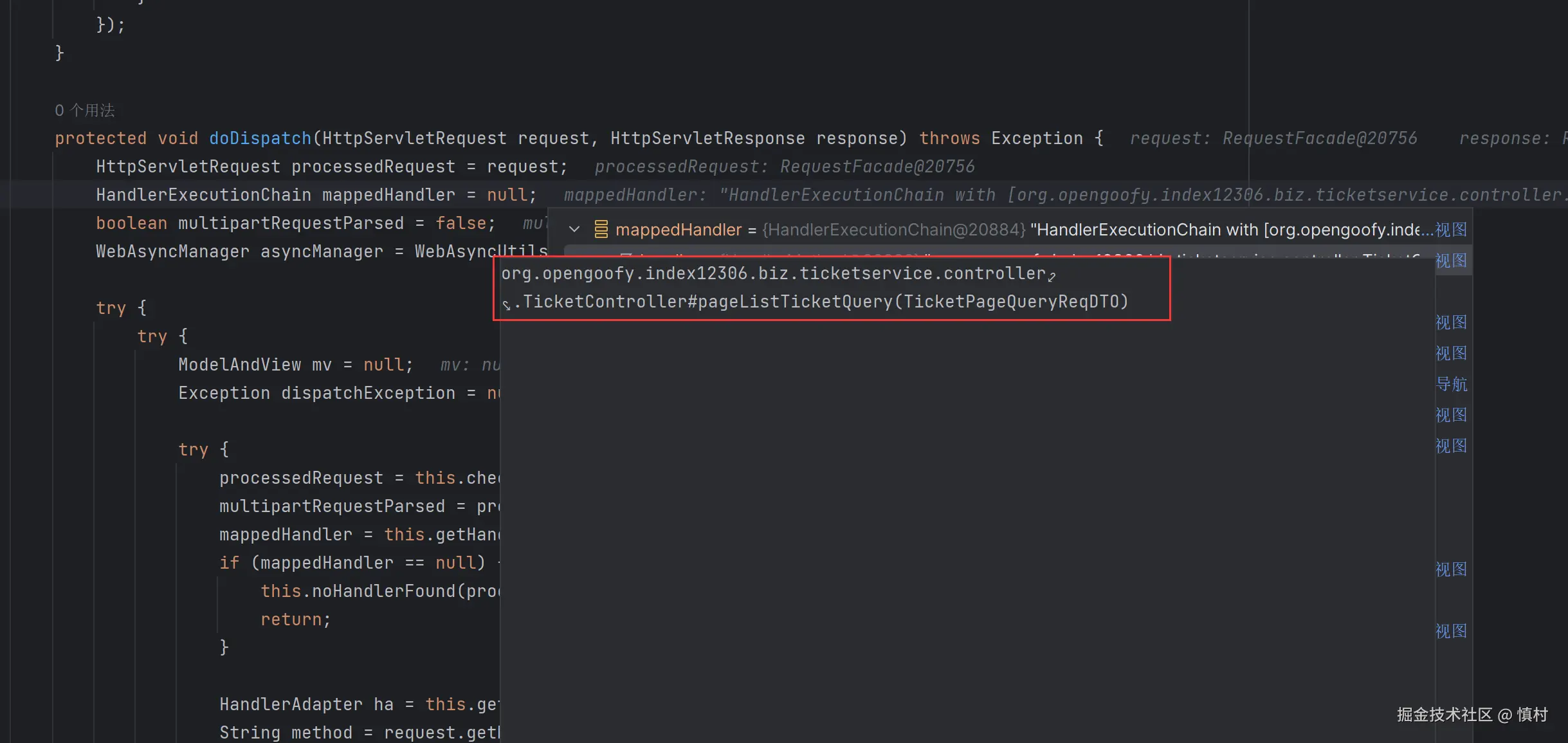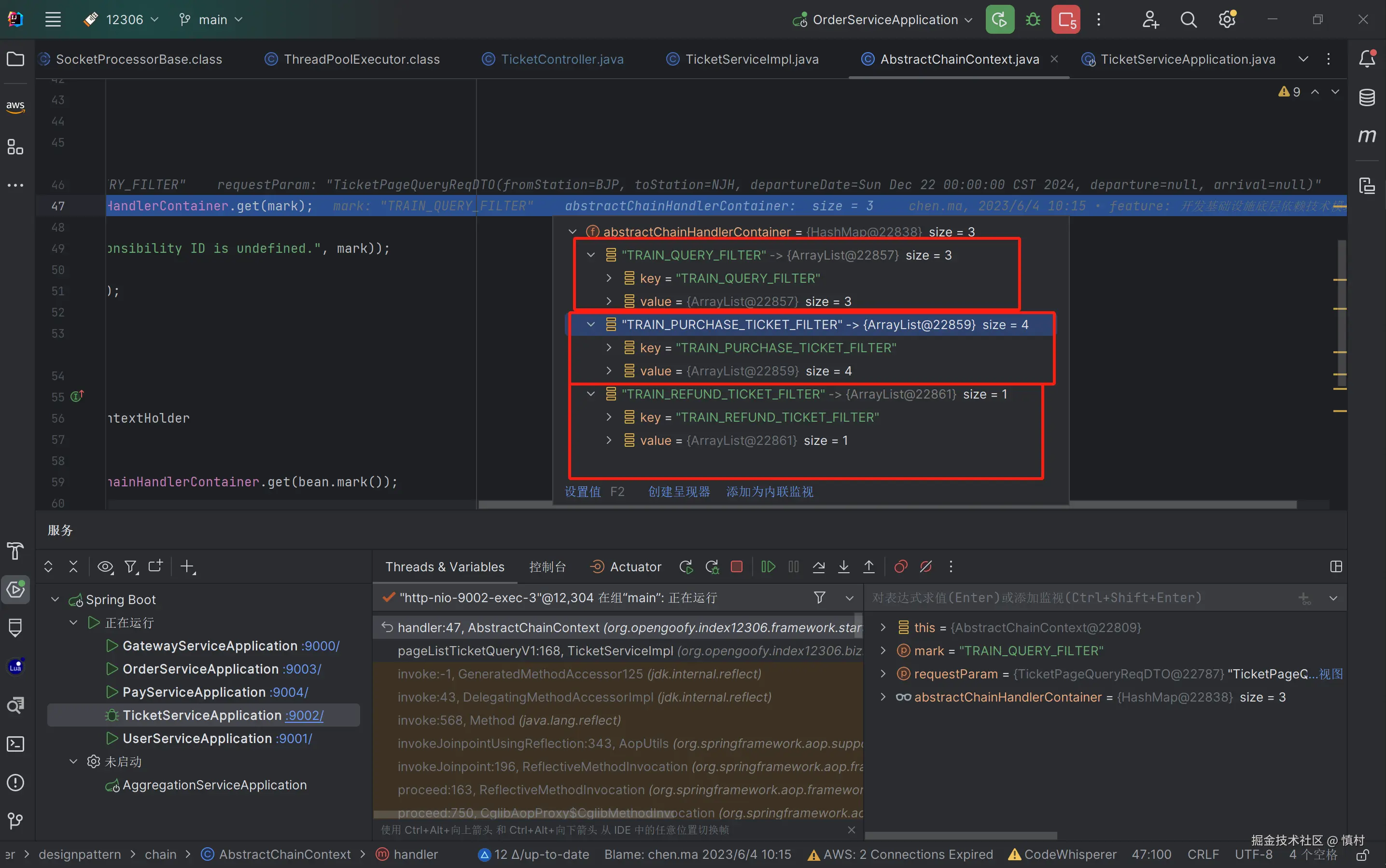 可以看到执行了mi(ticketServiceImpl).proceed方法