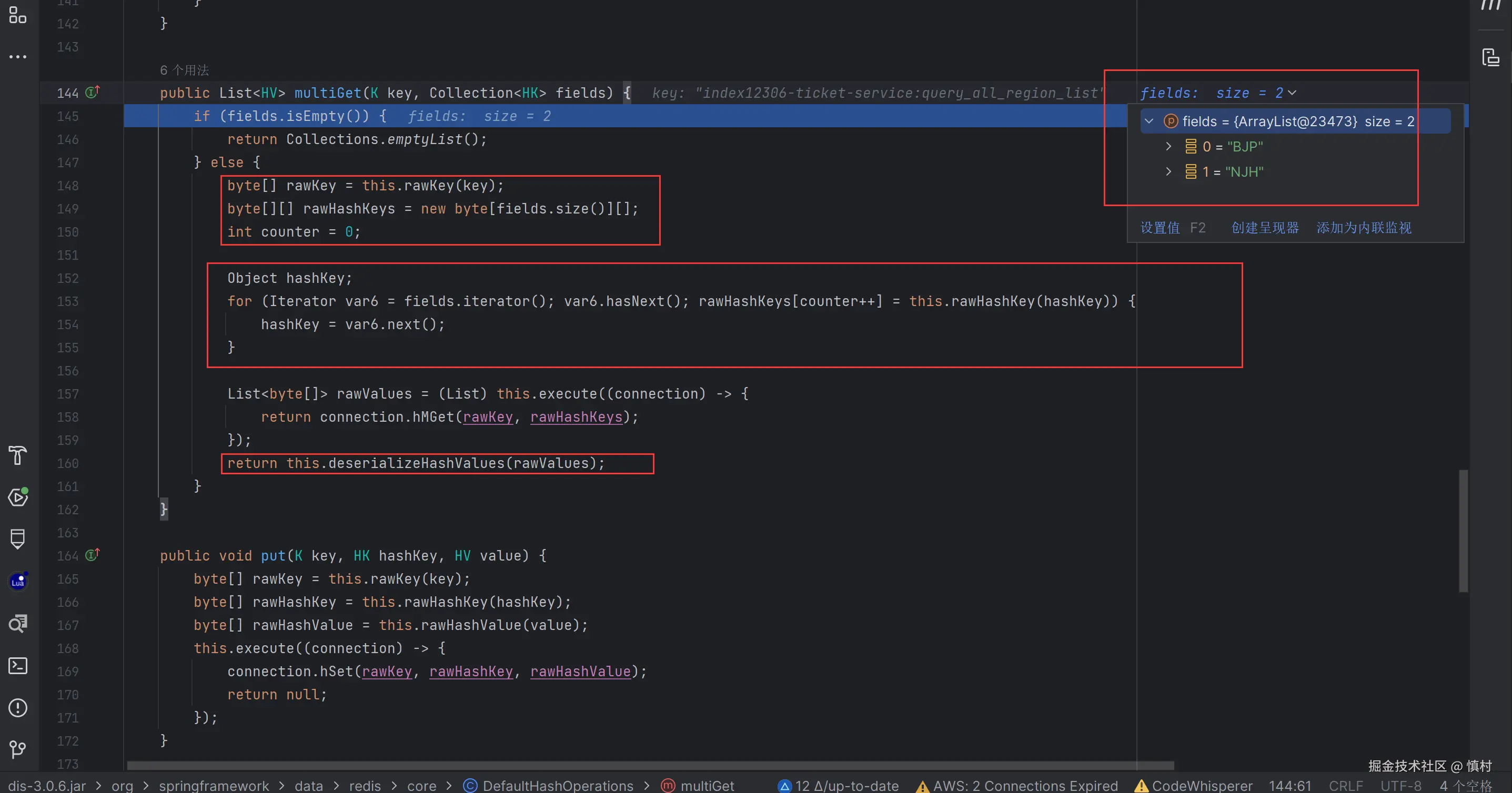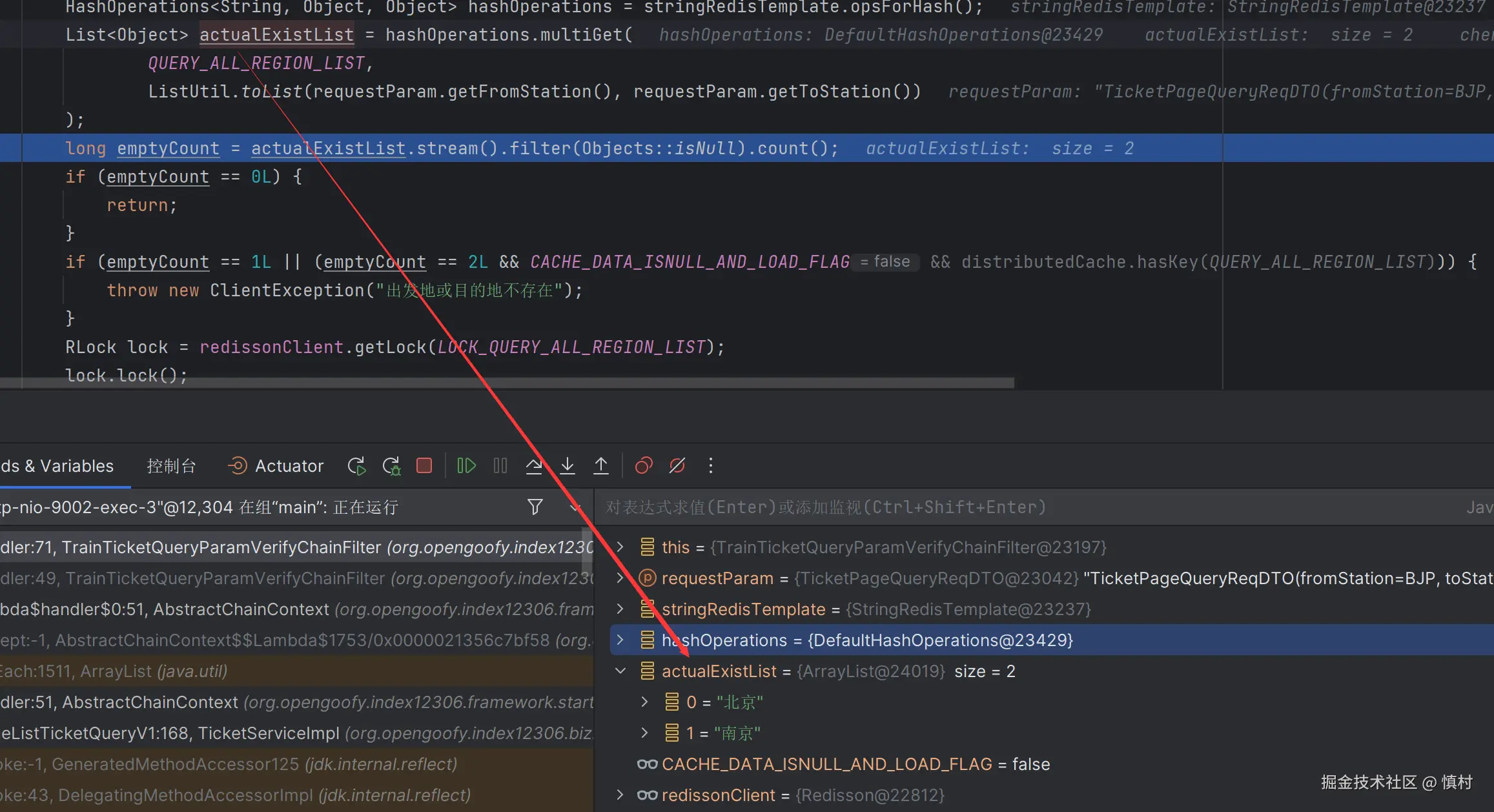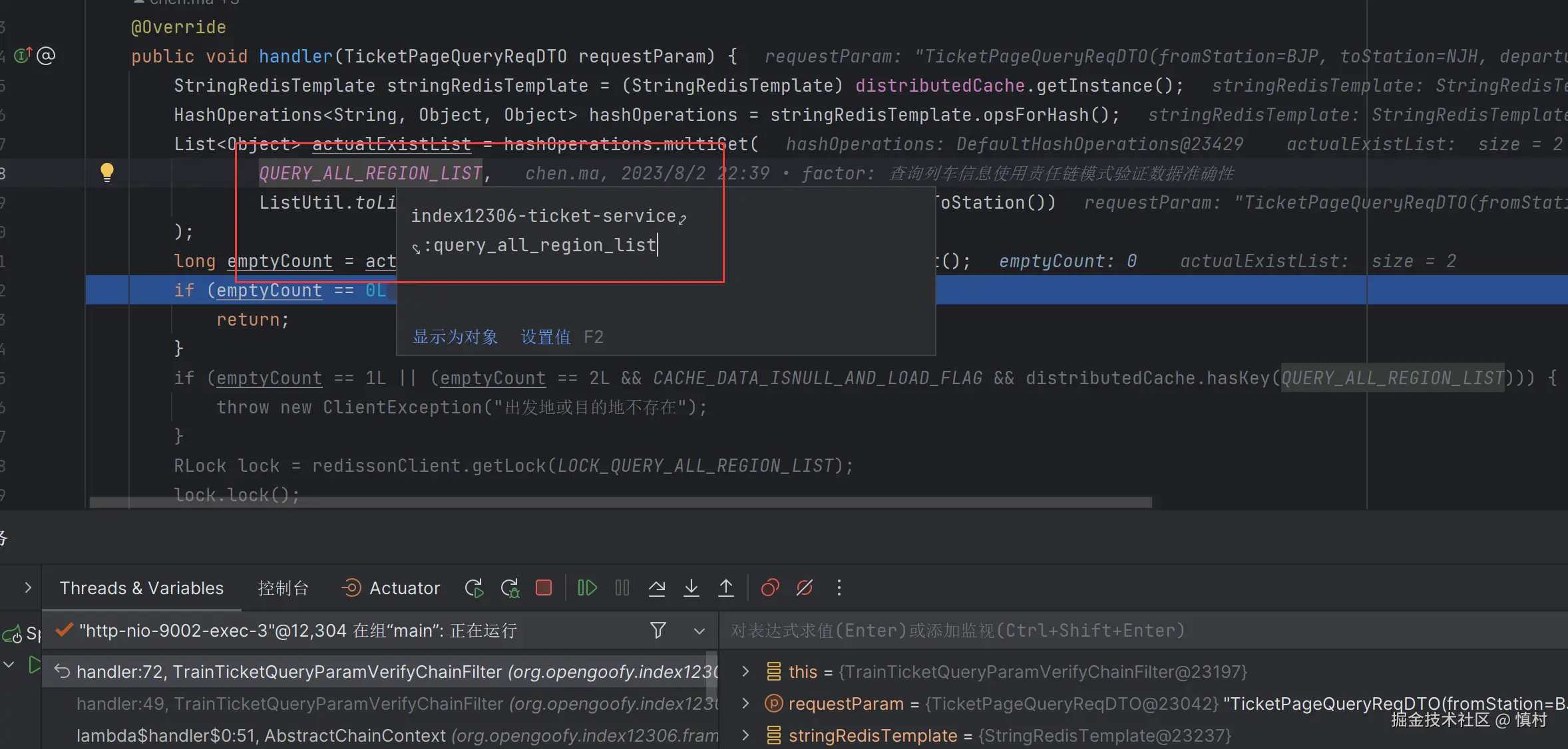 我们将请求过滤之后,发现我们请求中的两个参数都在对应的query_all_region_list中存在,故返回结果,接下来走缓存去查询对应的链路。