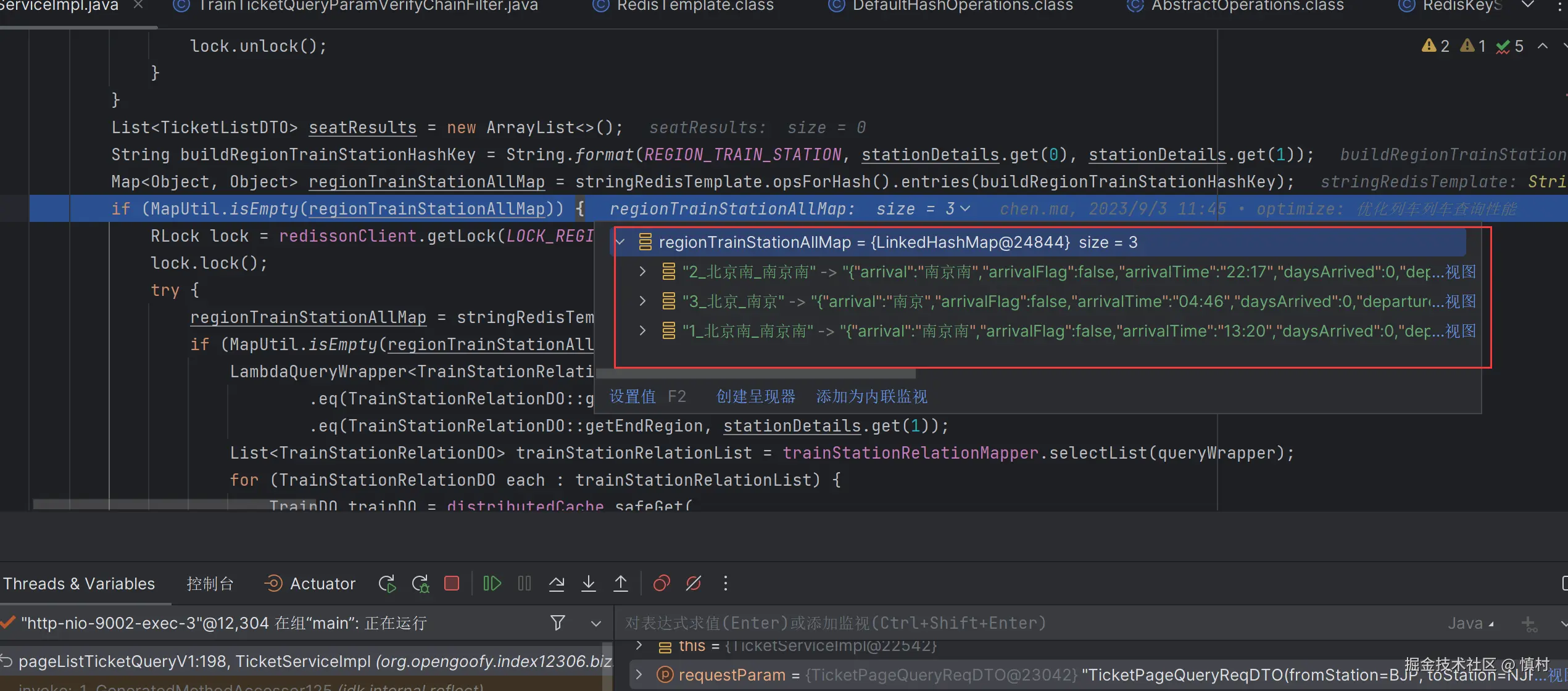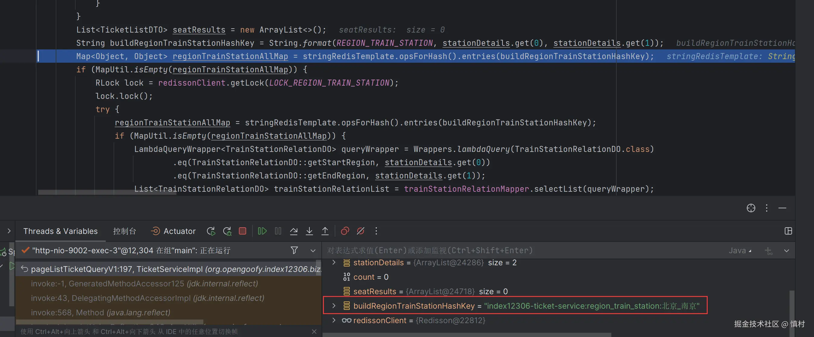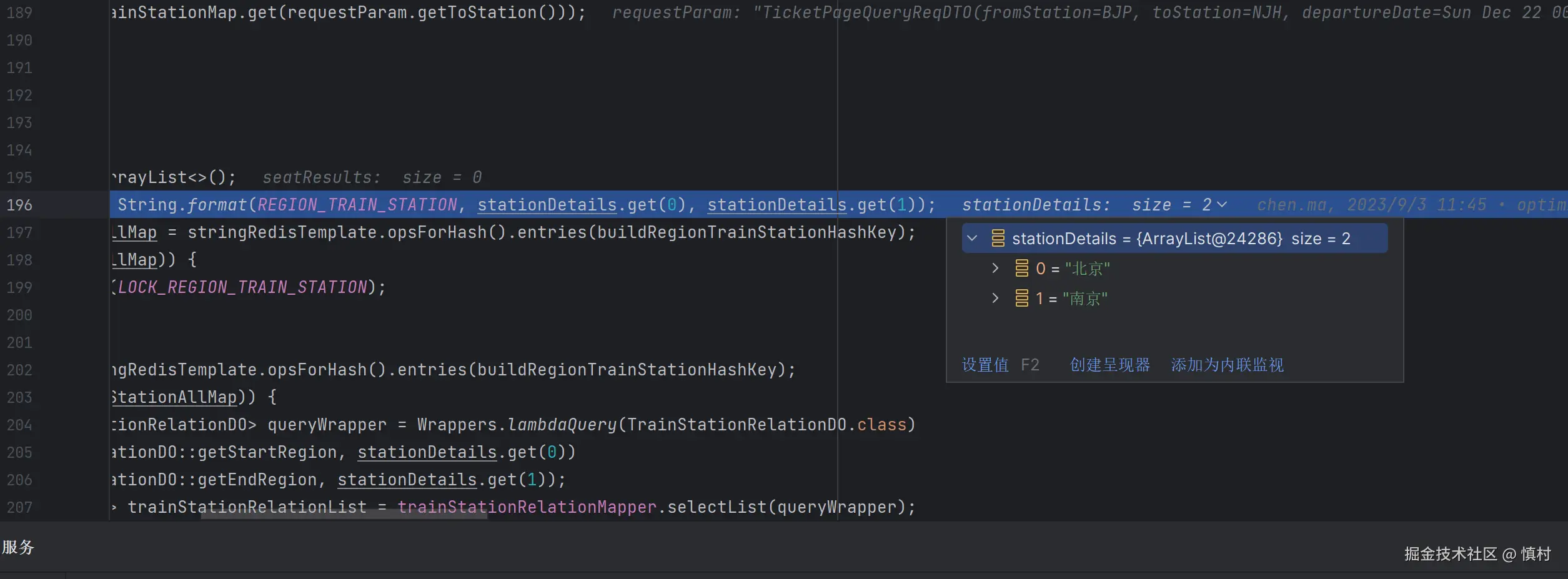 去查站点的映射,如果缓存中没有,就上分布式锁加双重判定的方式去查数据库,将数据库的列车关系(t_train_station_relation)回写到缓存中。