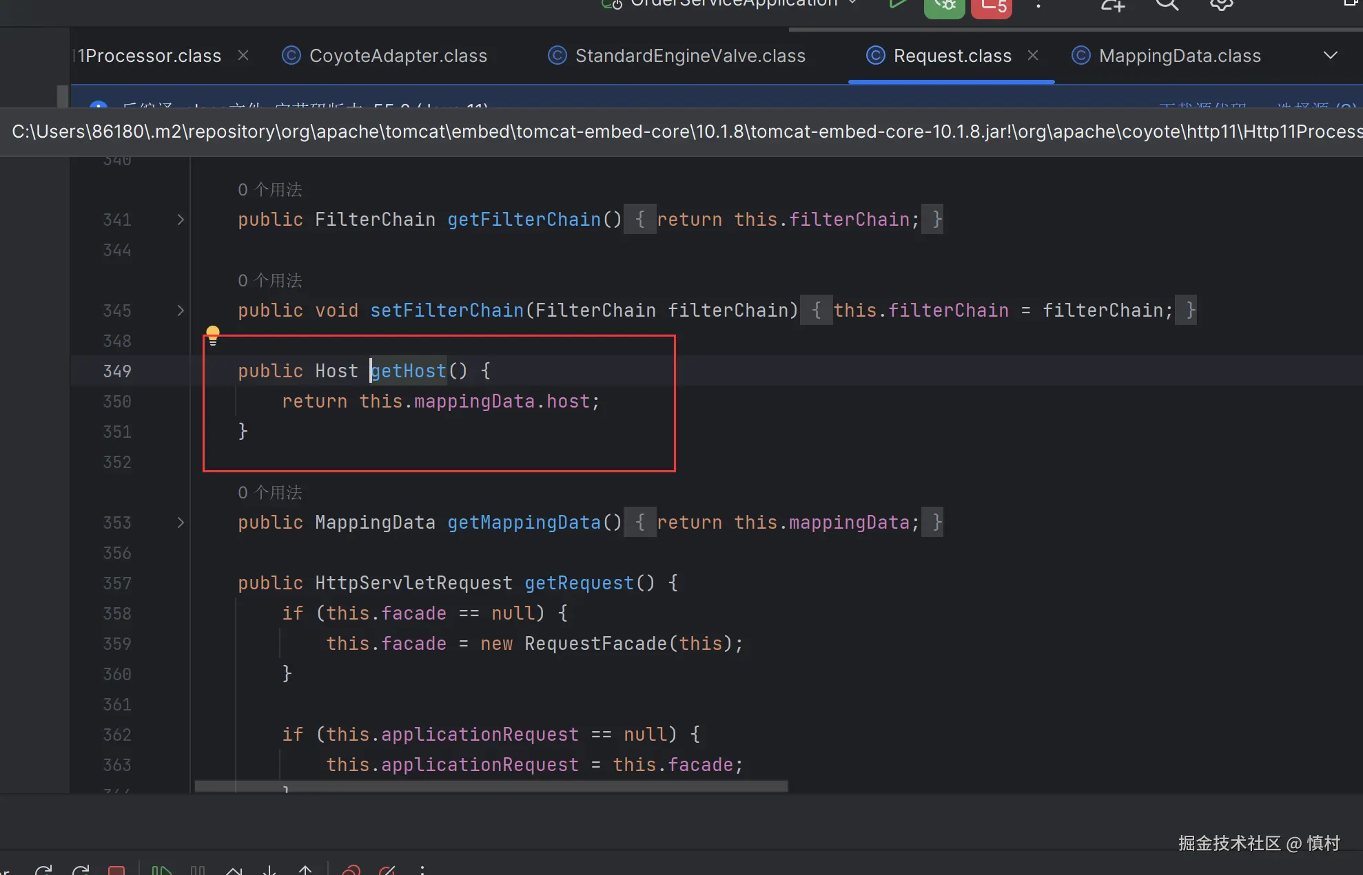 这里的Request类是没有host字段的,但是这个getHost方法是怎么来的呢?我们继续往下看