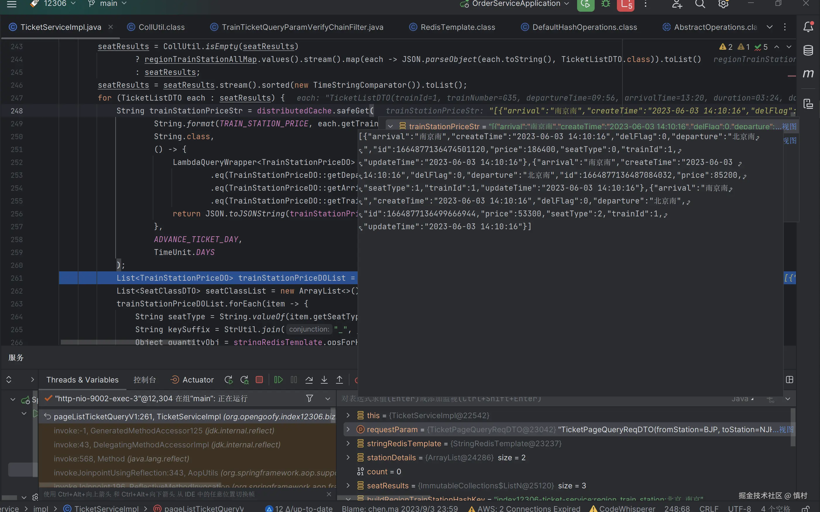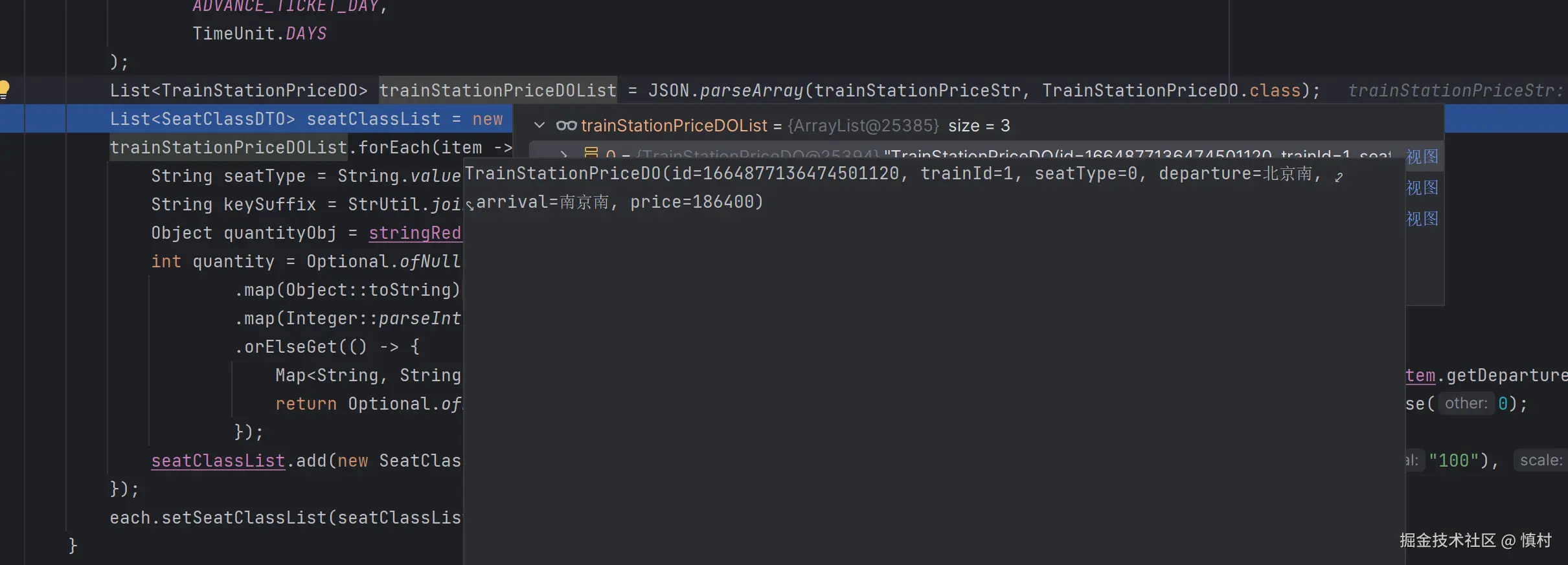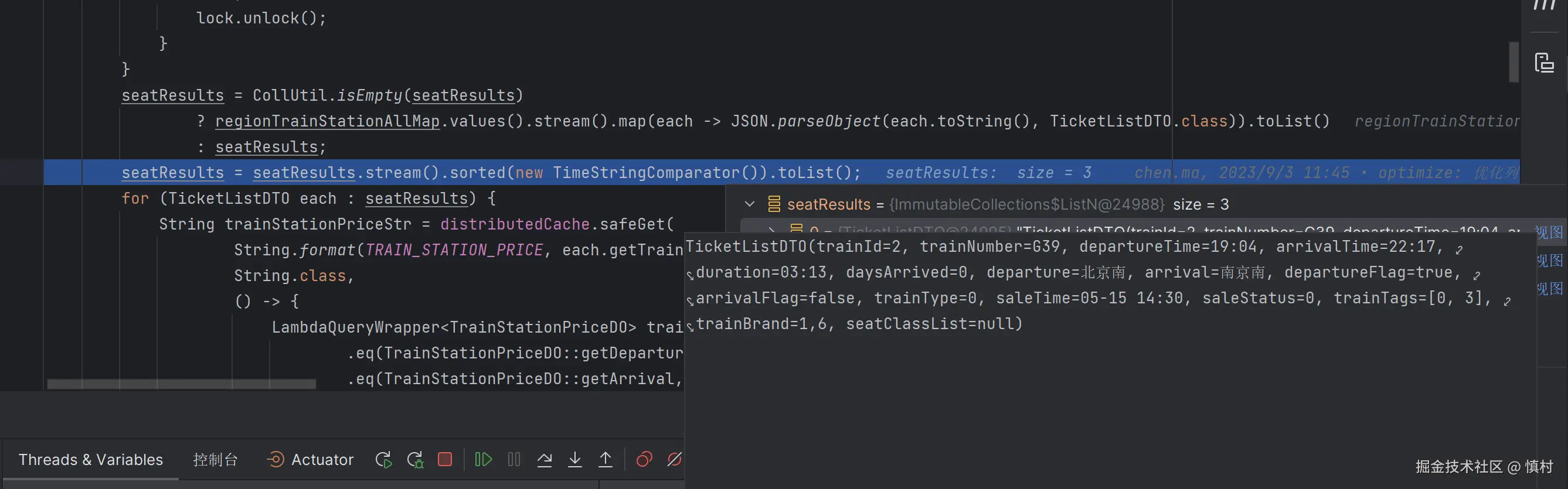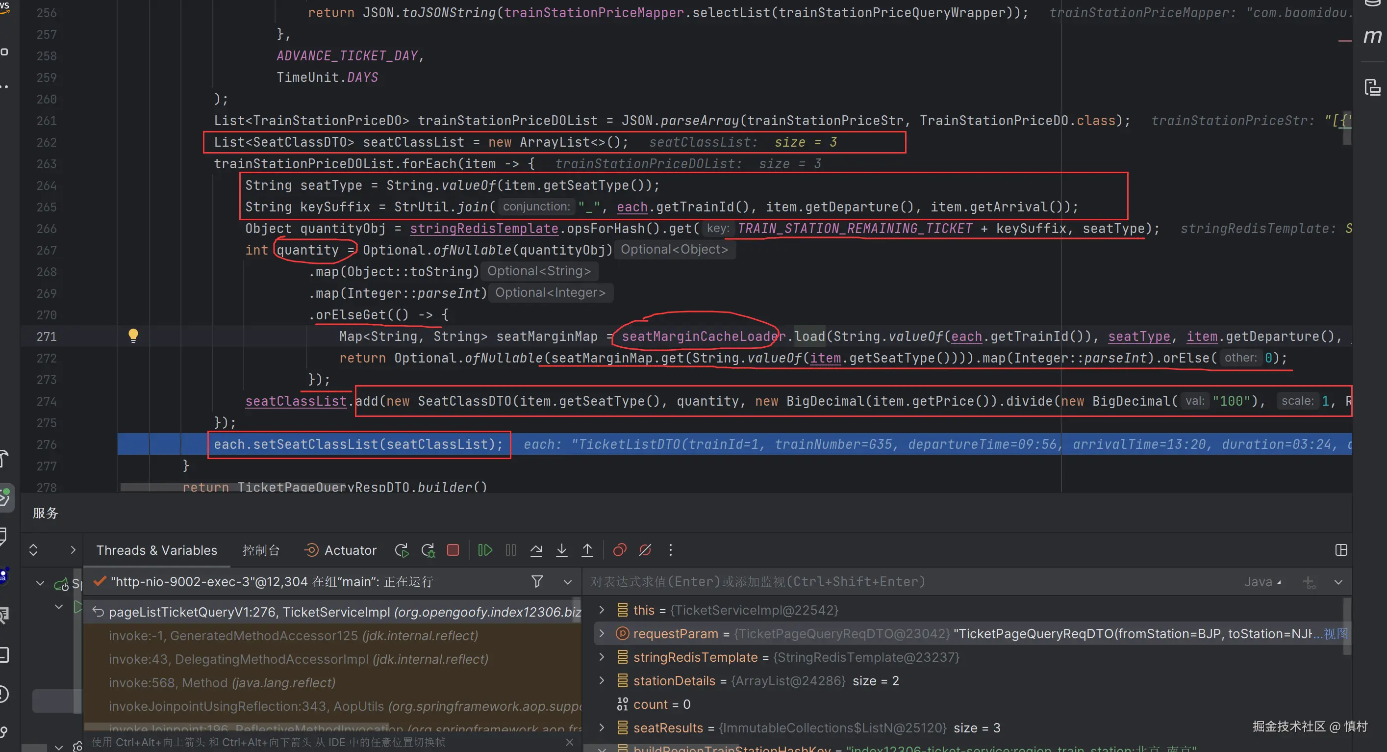 之后我们就要根据我们查出的路线,去找路线对应的价格、座位类型,最后还要查询座位的数量。这里使用的是Cache的实例,其获取不到数据内部会自动去查数据库回写