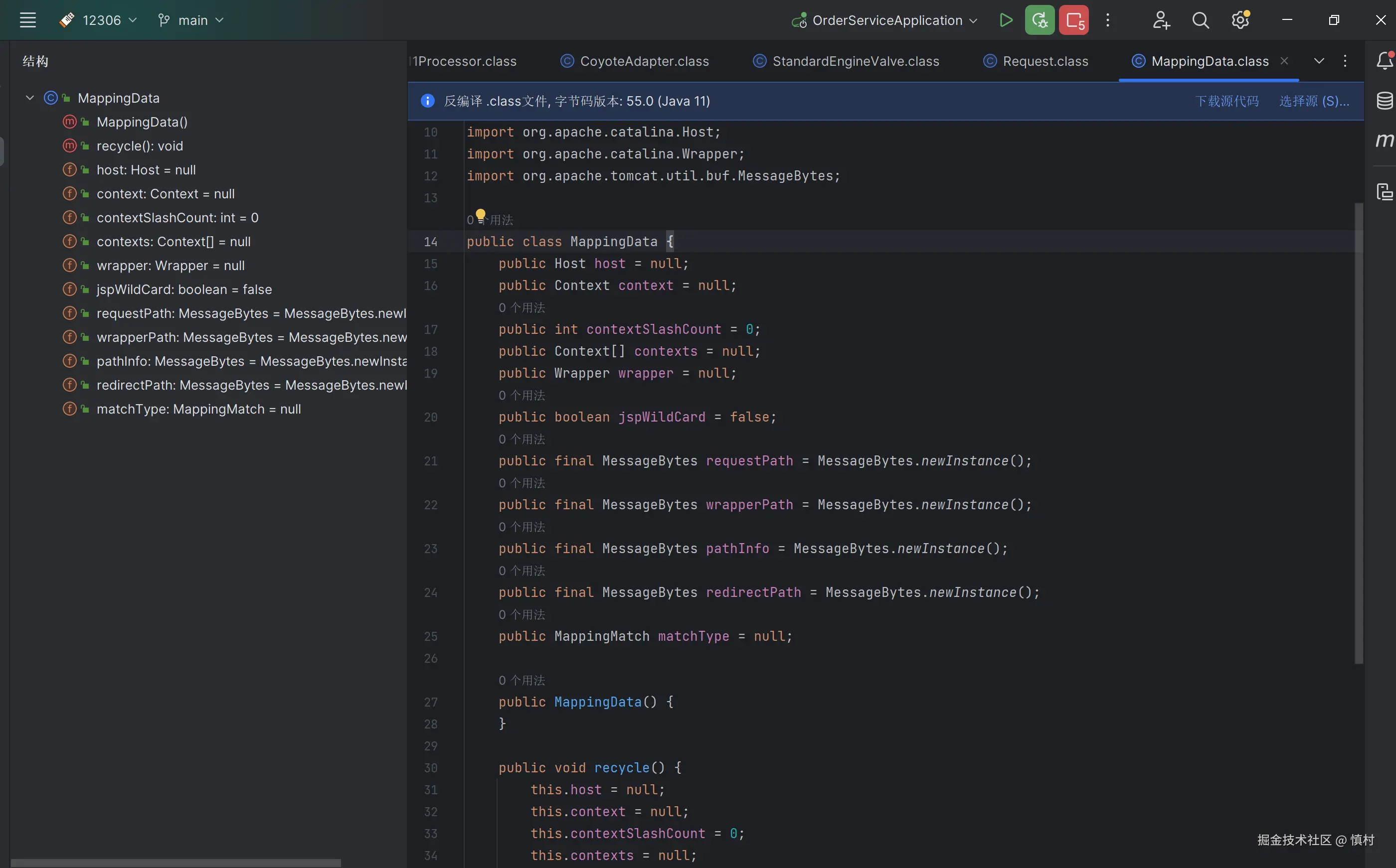 这个mappingData是什么东西呢?MappingData 类是 Tomcat 内部请求处理流程中的一个关键组件,它提供了一个结构化的方式来存储和管理请求映射的所有相关信息。通过 recycle 方法,Tomcat 可以高效地重用这些对象,减少垃圾收集的压力,提高服务器性能。
