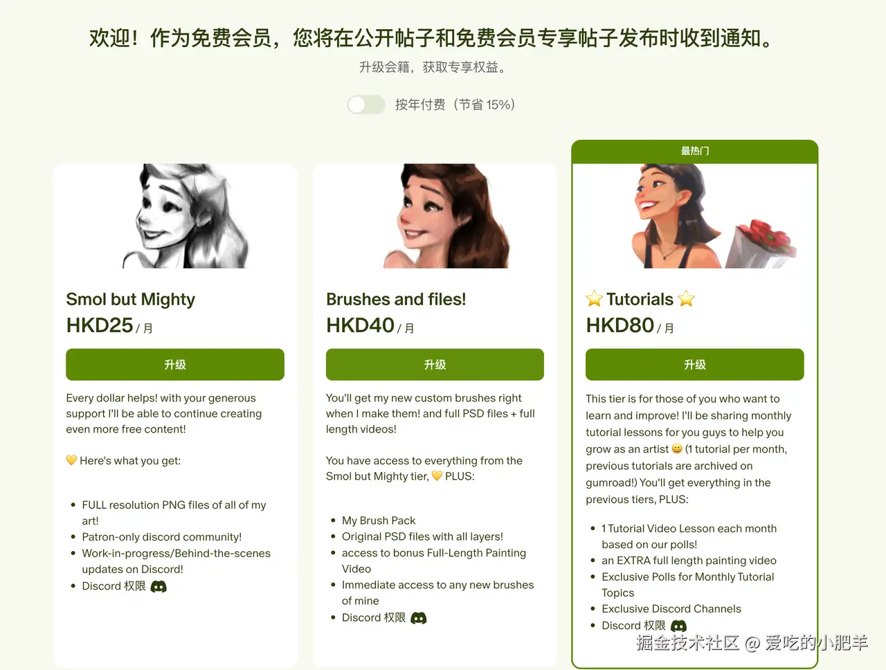 有些博主是可以免费订阅的,不过更多的内容需要开通相应等级会员才能看到,等级越高,看到的内容自然也就越多。