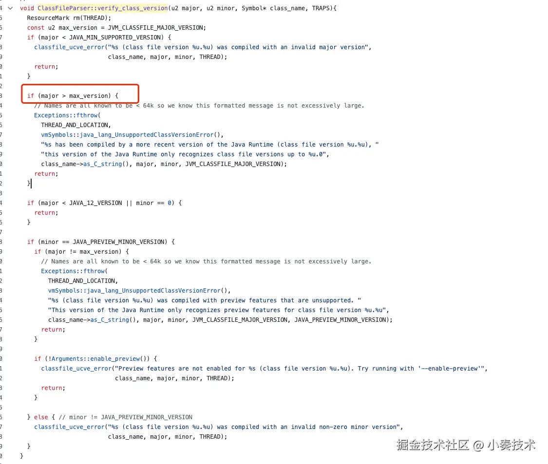 在jdk的源码中verify_class_version方法就会对class的版本进行校验