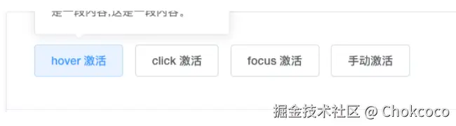 其核心在于,通过 Javascript 动态计算当前 hover 元素的位置,将弹出层定位到当前 hover 元素附近合适的位置,并且处理好各种边界场景,这里很重要一点是强依赖于 Javascript 的计算。