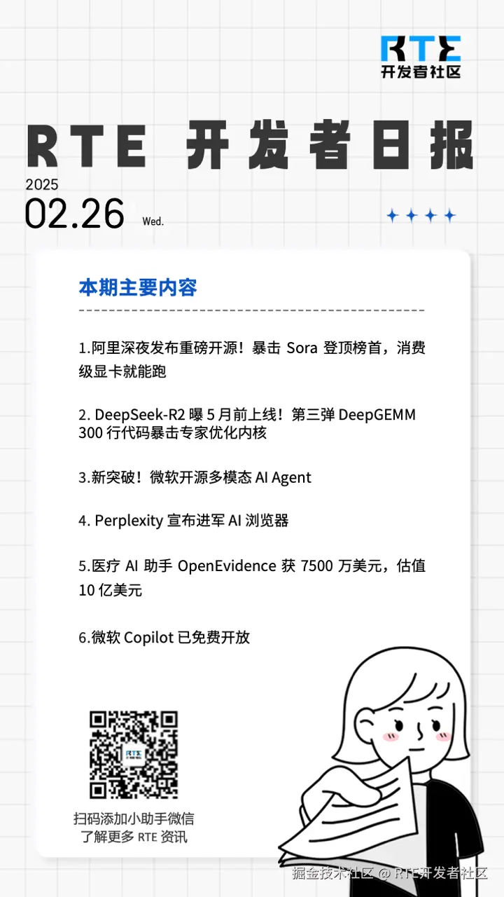 这里是 「RTE 开发者日报」 ,每天和大家一起看新闻、聊八卦。我们的社区编辑团队会整理分享 RTE(Real-Time Engagement) 领域内「有话题的 技术 」、「有亮点的 产品 」、「有思考的 文章 」、「有态度的 观点 」、「有看点的 活动 」,但内容仅代表编辑的个人观点,欢迎大家留言、跟帖、讨论。