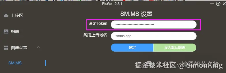 配置图床,填入api token即可。