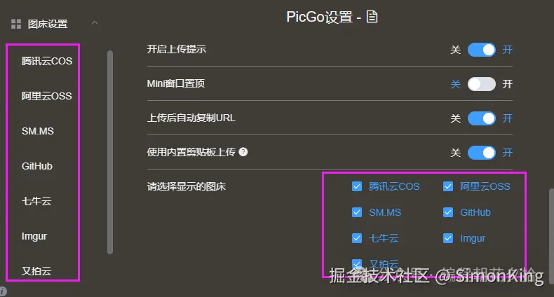 PicGo是一款开源的图片上传插件,其内置了7个图床:腾讯云COS、阿里云OSS、SM.MS、GitHub、七牛云、Imgur、又拍云。还可以通过插件扩展。官网地址:molunerfinn.com/PicGo/