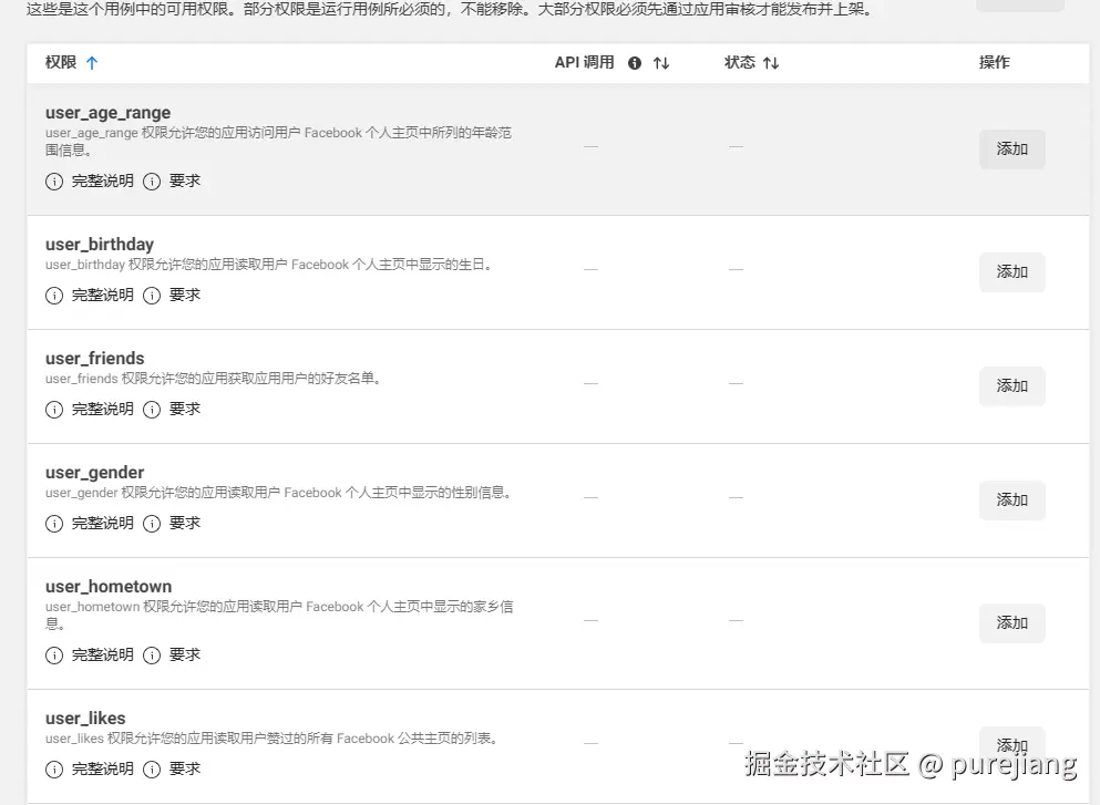 “身份验证和账户创建”, 在定制中可以配置获取用户数据的权限,不过这里的数据只有 email(邮箱)和 public_profile(默认的公开资料)。一般来说只需要 public_profile,游戏可能会需要 gaming_profile(玩家资料)。如果要获取更多的数据,就要添加 “额外 Facebook 用户数据 ” ,然后在定制中添加需要的权限。