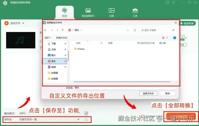 步骤3:选择完毕后,点击【保存至】功能,自定义文件的导出位置,最后点击【全部转换】即可。