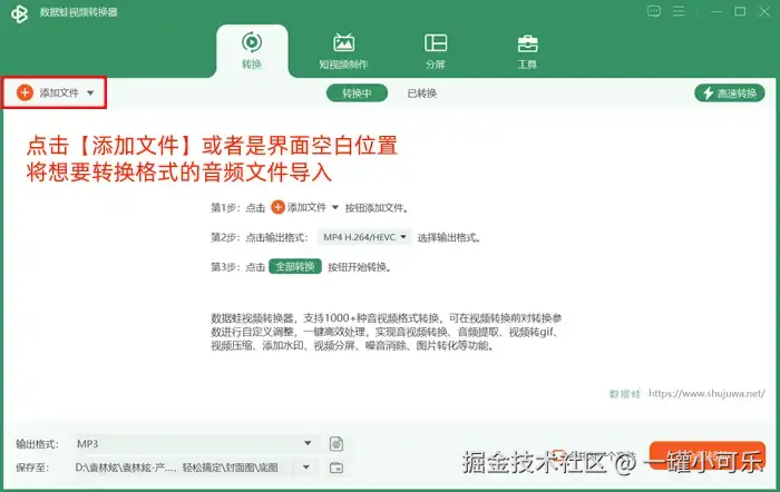 怎么将音频文件转换格式?用户可以使用数据 蛙视频转换器将音频转换格式,这个工具可以在最大程度上减少音频文件在转换格式的过程中出现的质量下降问题。此外,该应用可以转换1000多种不同的文件格式,几乎包括了所有的音频格式,还可以对音频格式的质量、比特率等参数进行自定义设置。 以下是具体的操作步骤介绍。