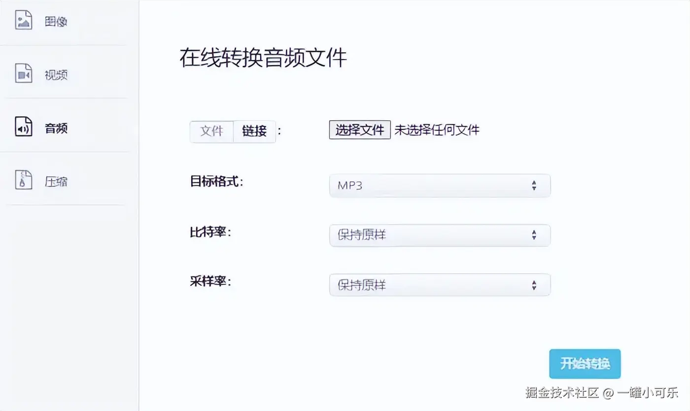 Aconvert也是文件格式转换网站,它支持对音频文件进行转换、分割、合并、提取等操作,并在转换选项中,可以设置音频格式的比特率、采样率等参数,从而保护音频的音质。