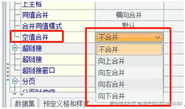 空值合并,合并的方式也有 4 种:向下,向上,向左,向右