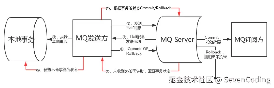 最终步骤:MQ Server基于 commit/rollback 对消息进行投递或者删除。