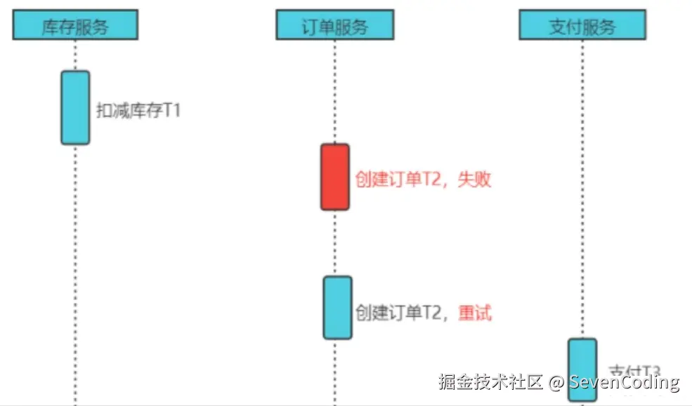 - 每个 Saga 事务由一系列幂等的有序子事务(sub-transaction) Ti 组成。