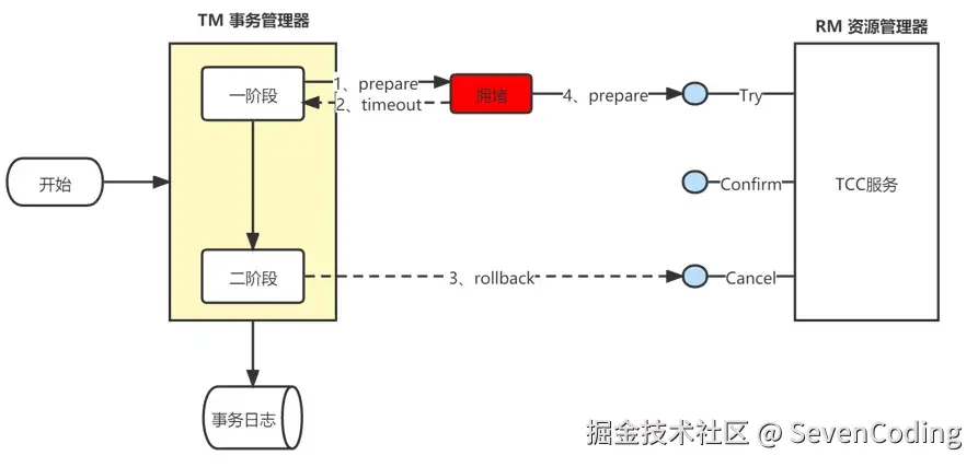 TCC的执行流程可以分为两个阶段,分别如下: