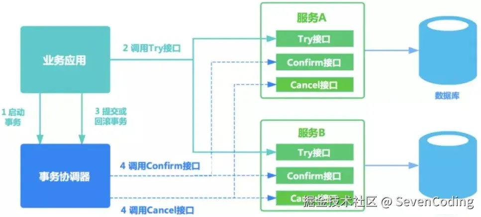 - Try阶段执行成功并开始执行 Confirm 阶段时,默认 Confirm 阶段是不会出错的,也就是说只要 Try 成功,Confirm 一定成功(TCC设计之初的定义)