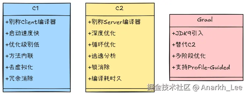 - 基于JVMCI接口:JDK9+ 支持(-XX:+UnlockExperimentalVMOptions -XX:+UseJVMCICompiler)