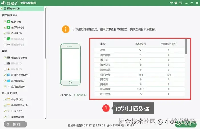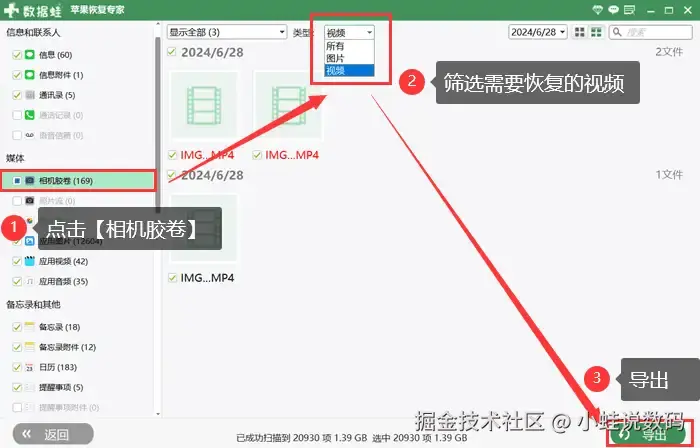 视频不小心永久删除了怎么办?别急!市面上有很多专门用于恢复苹果手机数据的专业软件,比如【数据蛙苹果恢复专家】。软件支持照片、视频、联系人、短信、通话记录、备忘录、WhatsApp 等常用数据都能恢复。彻底删除的视频怎么恢复?采用先进的扫描算法,能够深度扫描设备,最大程度找回丢失数据。详细操作步骤如下: