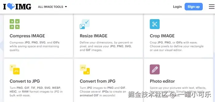 ILoveimg一个多功能图片处理网站,在这个网站上,用户可以进行转换、压缩、编辑、剪辑、加水印等操作,为用户提供了较大的图片编辑空间。但是,用户使用这个网站转换heic格式的图片的话,只能转换为jpg格式,目前该网站还未提供其他图片格式供转换。
