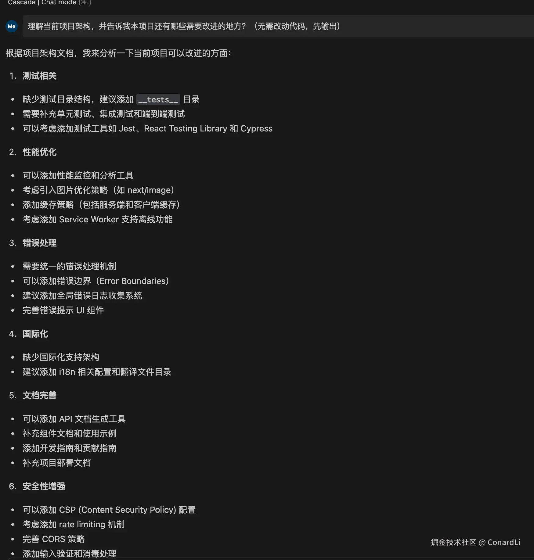 - 项目理解能力:我们让模型在一个具备一定规模的项目下分析整个项目的架构和实现,并给出具体优化措施,观测优化措施的完善程度,来对比结果。