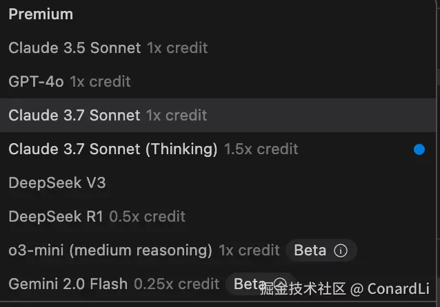 这里我们注意,这次更新之后,Claude 3.7(Thingking) 的收费标准和 Claude 3.5 并不是一样的,而是贵了 1.5 倍,比 DeepSeek R1 的收费要贵了 3 倍,我们按最基础的 10💲 付费会员来算,原本每月能调用 500 次 Claude 3.5,现在只能调用 333 次 Claude 3.7(Thingking)。