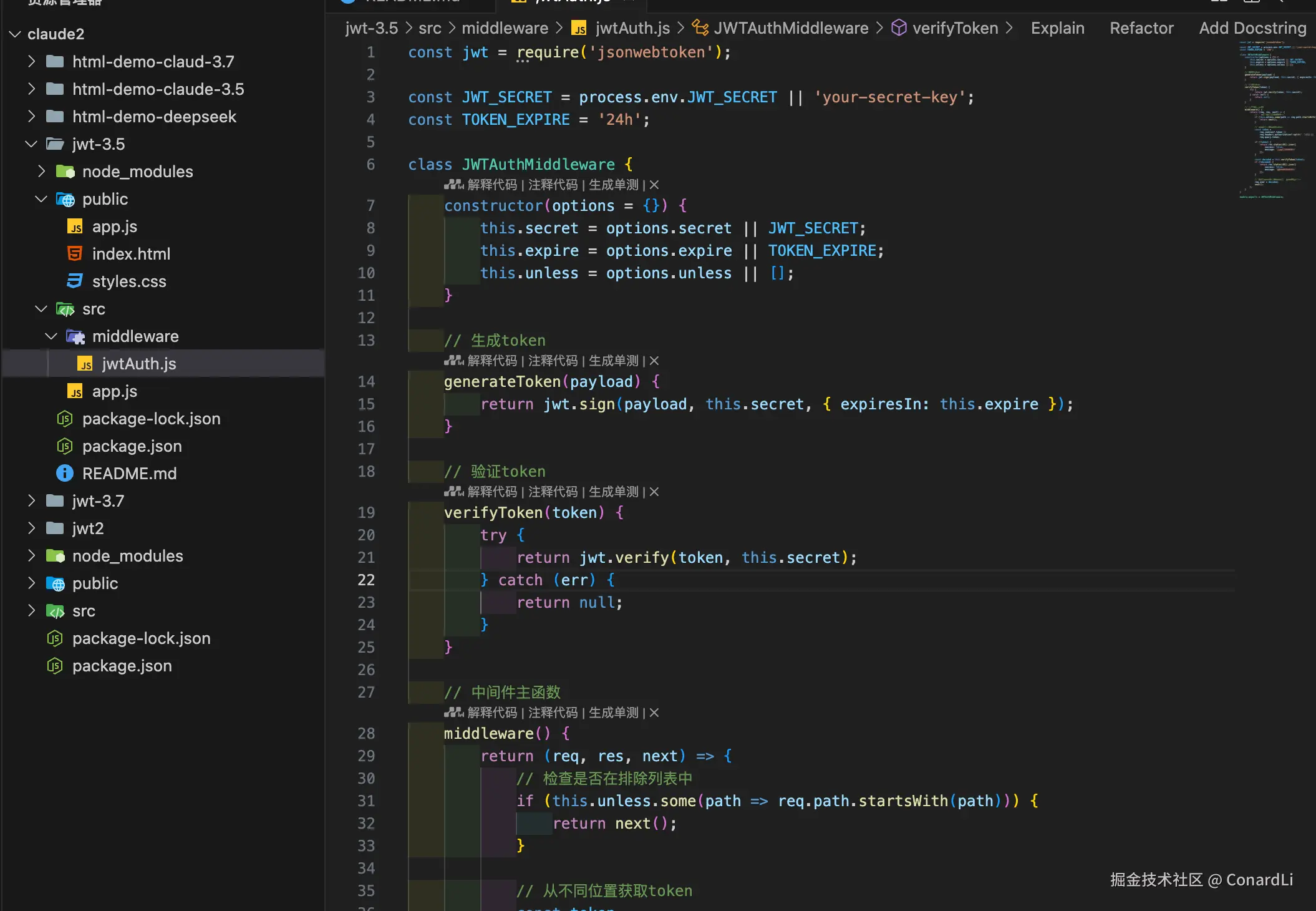 - 设计并实现一个 Node.js 的 JWT 认证中间件,考虑安全性和易用性