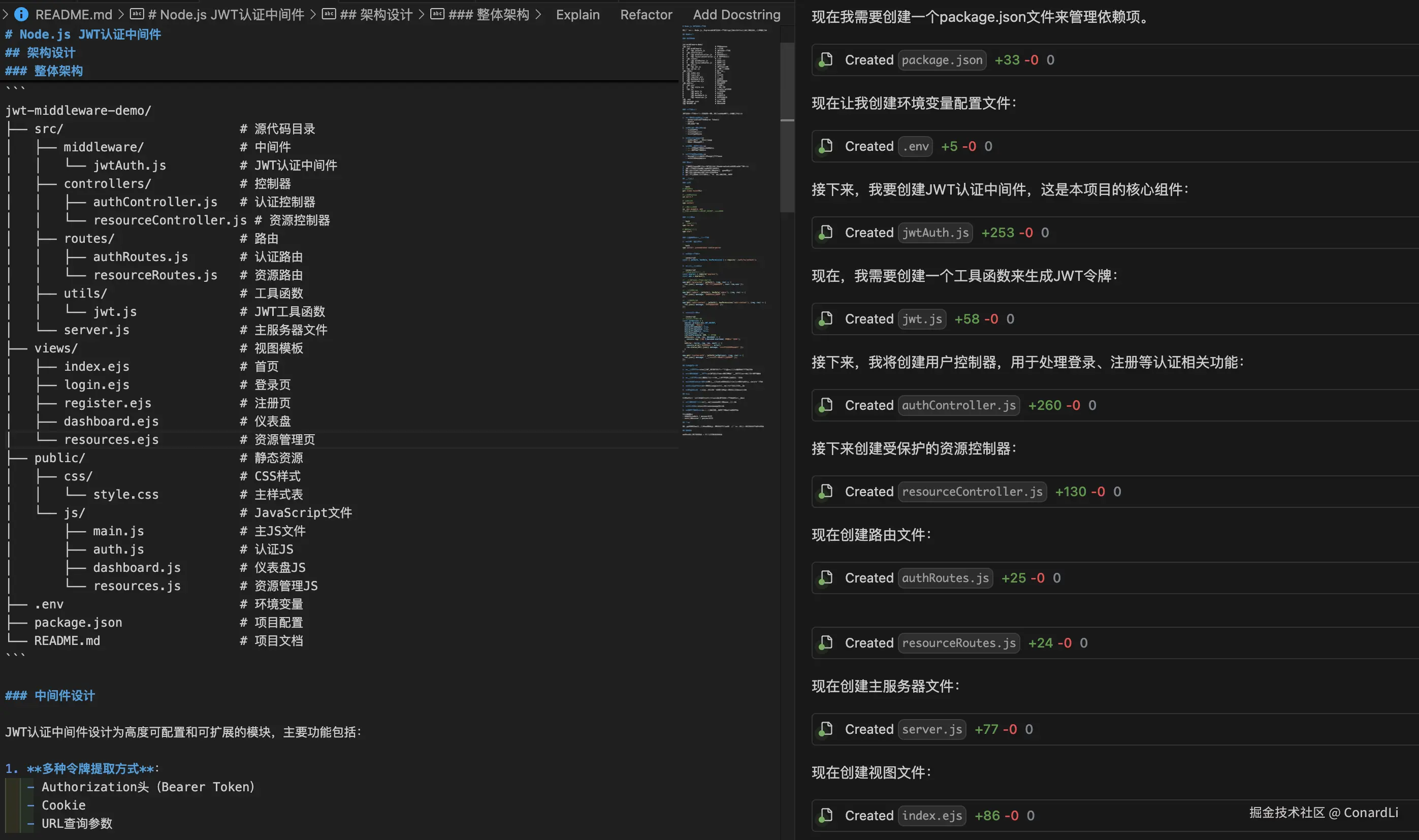 - 创建 Readme 文档,并编写此中间件的架构设计、使用方式等