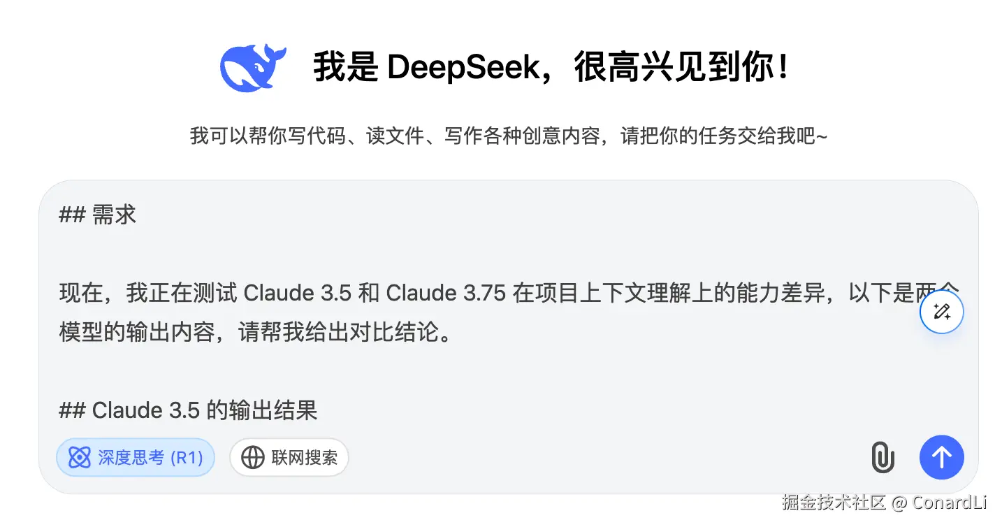 通过对两个版本的输出进行对比分析,可以看出 Claude 3.7 在项目上下文理解能力上有显著提升,以下是具体对比结论(由 DeepSeek 输出):