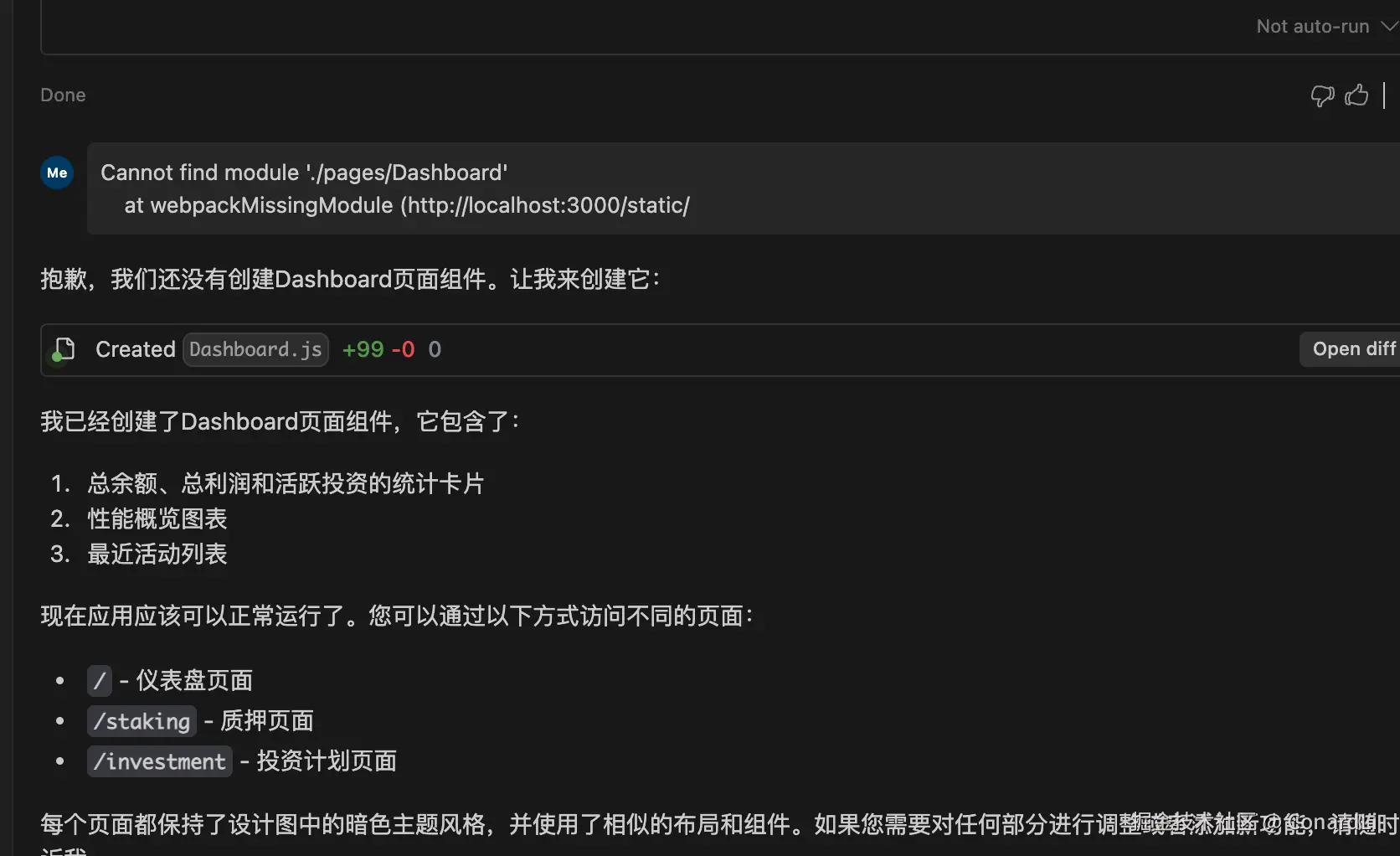 整体的配色、布局和关键的元素是在的,但是功能差的就比较多了,而且路由不能点击,我输入给它的是两张图片,这里只实现了一个路由。想要达到比较高的还原效果,估计得进行多轮对话才行。