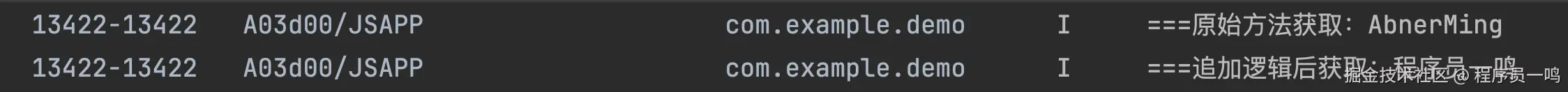以上的代码,当执行util.Aspect.addBefore方法后,就会把name进行修改,再次调用test.getName(),就会发生变化,可以看下输出的日志: