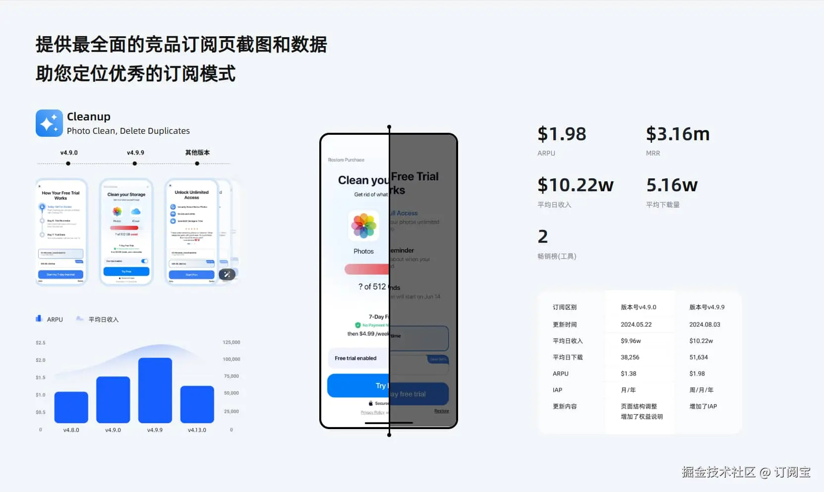 - 订阅宝:深度了解竞争对手的订阅价格、历史趋势和付费用户分布,帮助你找到定位差异化的最佳方式。