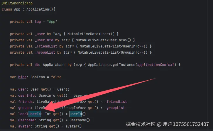 kotlin为这个变量生成了getter方法,在Jvm中对应的应该就是getUserId(),然后WebView加载时 调用系统 chromium-TrichromeWebViewGoogle的相关系统文件时传递的userId应该是applicationContext中的getUserId,但是这个方法在我自定义的Application中被我重写了,emmmm,这也能蒙混过关???