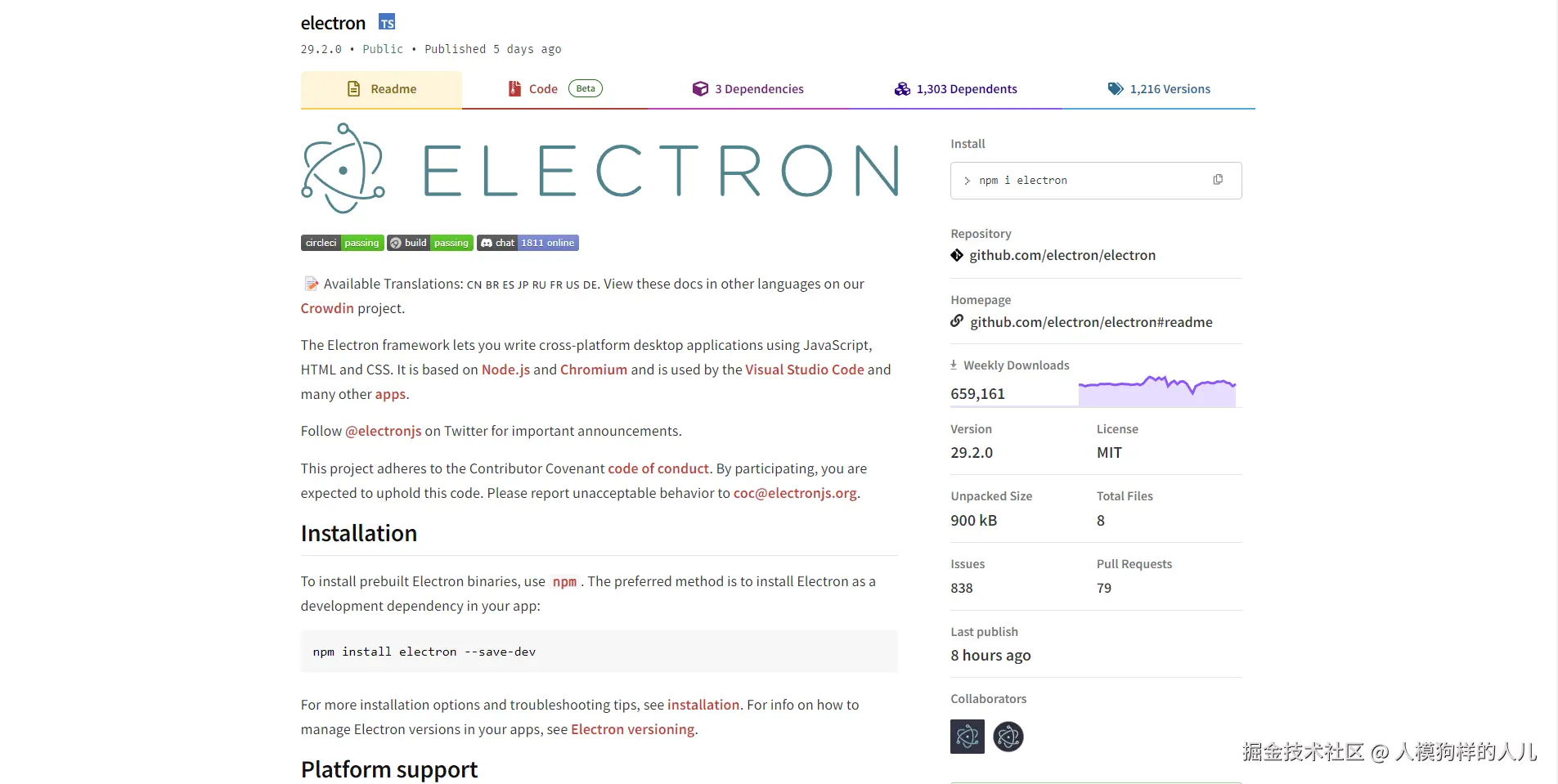 综上:在 开源协议 维度,三者旗鼓相当;在 NPM 周下载量、Github Star 维度,electron 都具备十分明显的优势!
