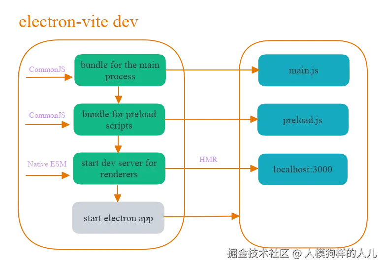 - Electron 是一个基于 Chromium 和 Node.js 构建跨平台桌面应用程序的框架,这意味着打包工具需要同时处理 Node.js 和 浏览器 两种环境