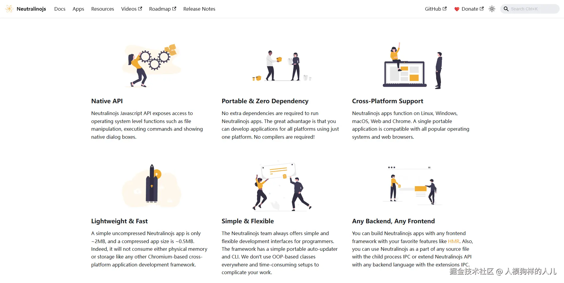 | neutralino.js | 社区生态相较小,有一些活跃的插件和工具使用, 第三方插件生态相对较小,尤其在企业级应用开发中,可能缺乏一些企业级所需的专业工具和插件[Neutralinojs Apps | 软件更新相对较慢,在一些新特性和功能的支持上较弱 | |
