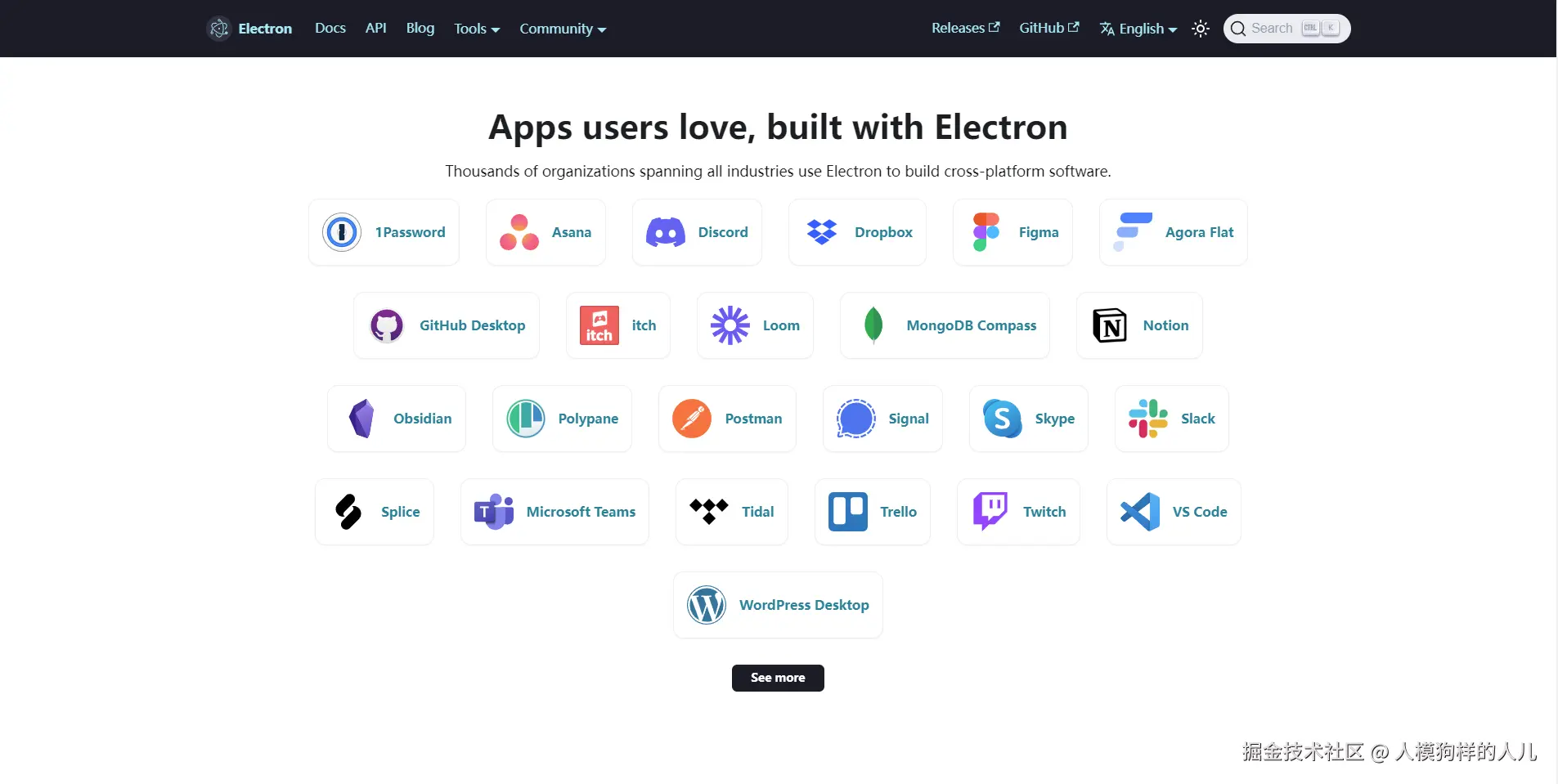 综上:在 技术选型 维度,三者均属于 Web Developer 的核心技能范畴;在 开发构建工具 维度,electron 具备丰富的企业级项目构建工具生态,具备更快、更精简的开发体验;在 文档丰富度 维度,electron 除拥有丰富的双语文档外,还有详细的示例代码及最佳实践!