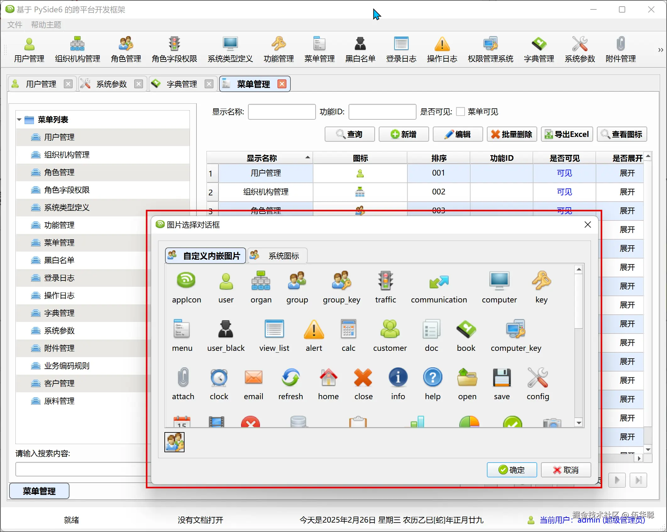 系统中统一展示和选择图标的界面如下所示。